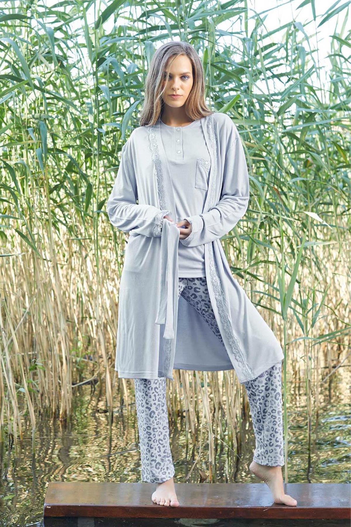 Aydoğan Kadın Sabahlıklı Pijama Takımı - Mavi
