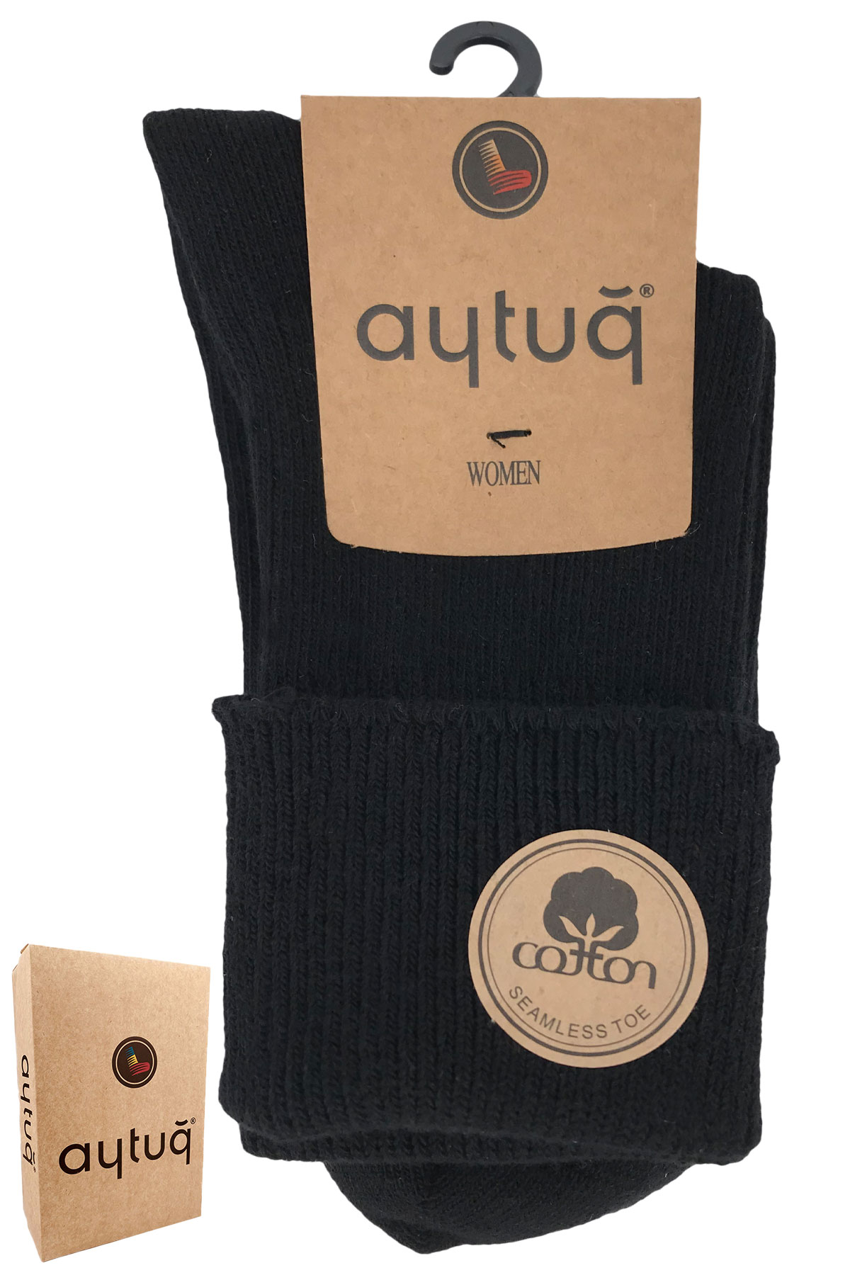Aytuğ Kadın Soket Çorap Dikişsiz Çift Kat Pamuklu Kıvrık