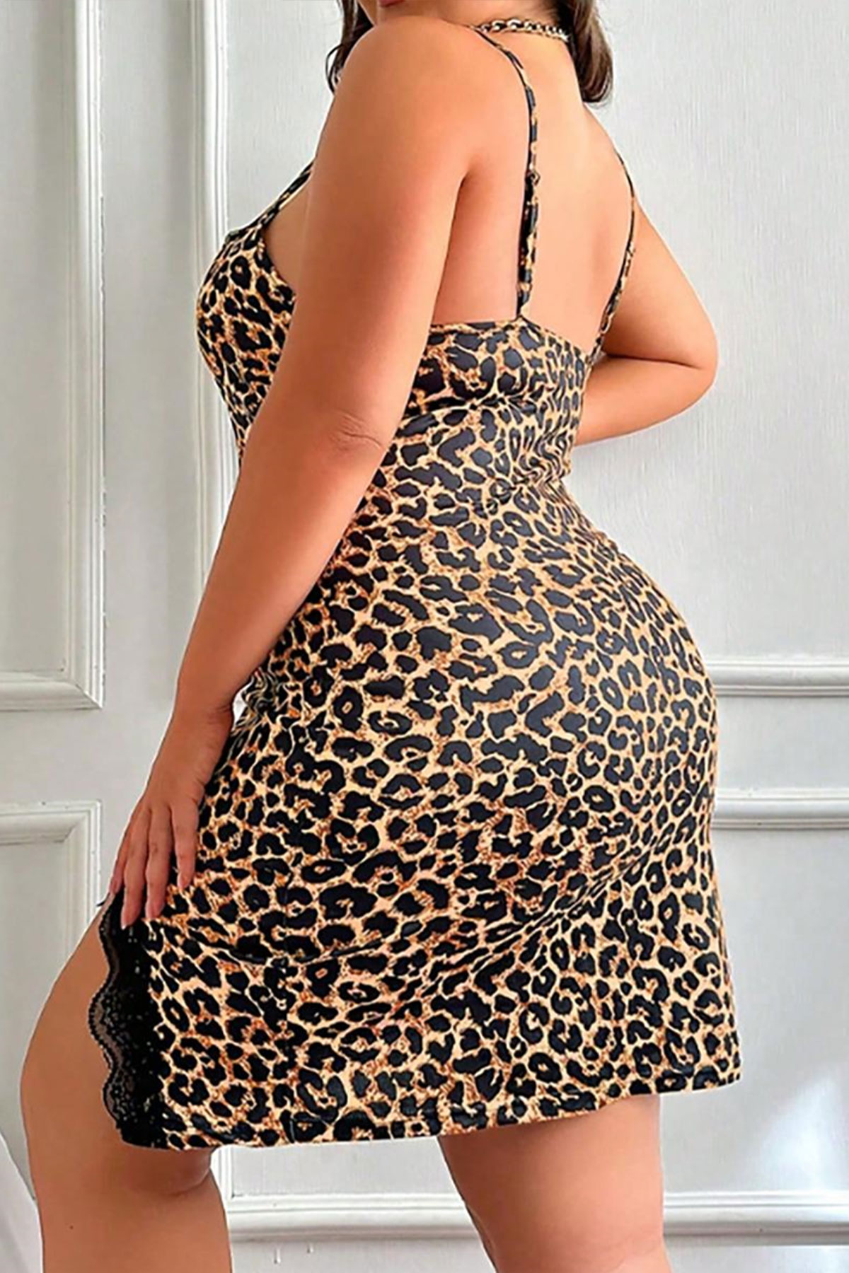 Beleng Kadın Fantezi Gecelik Leopar Büyük Beden