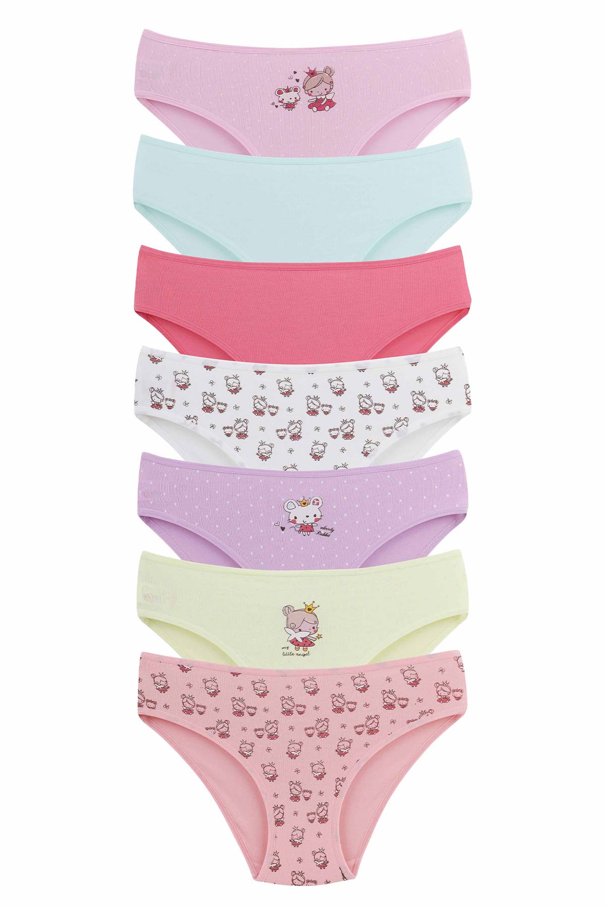Domi Kız Çocuk Slip Külot Karışık Desenl 7'li Pamuk - Asorti
