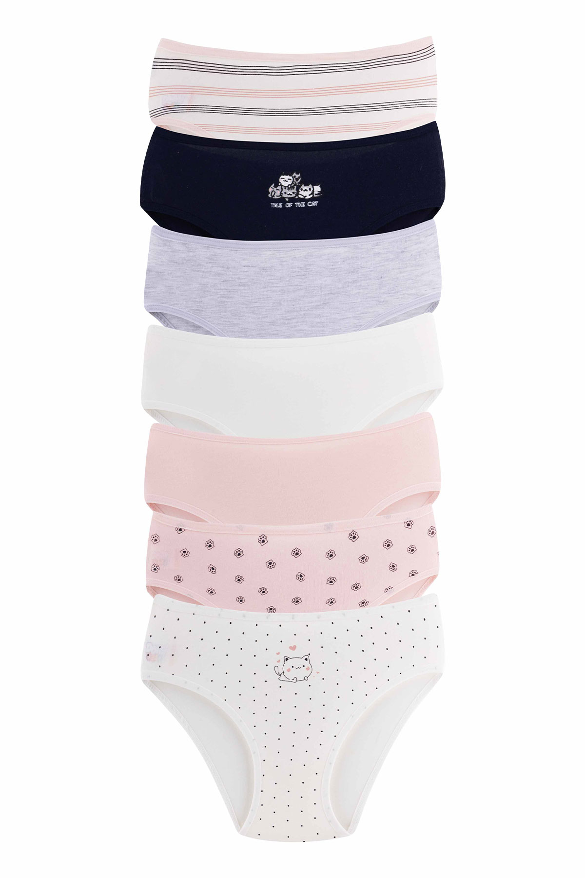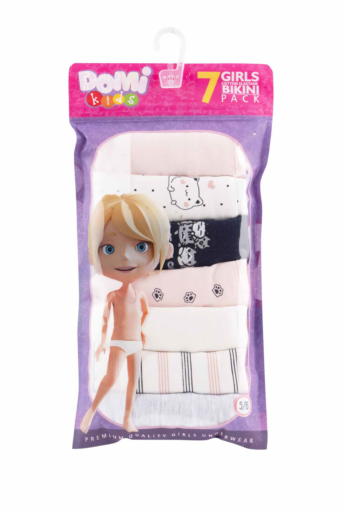 Domi Kız Çocuk Slip Külot Karışık Desenl 7'li Pamuk - Asorti