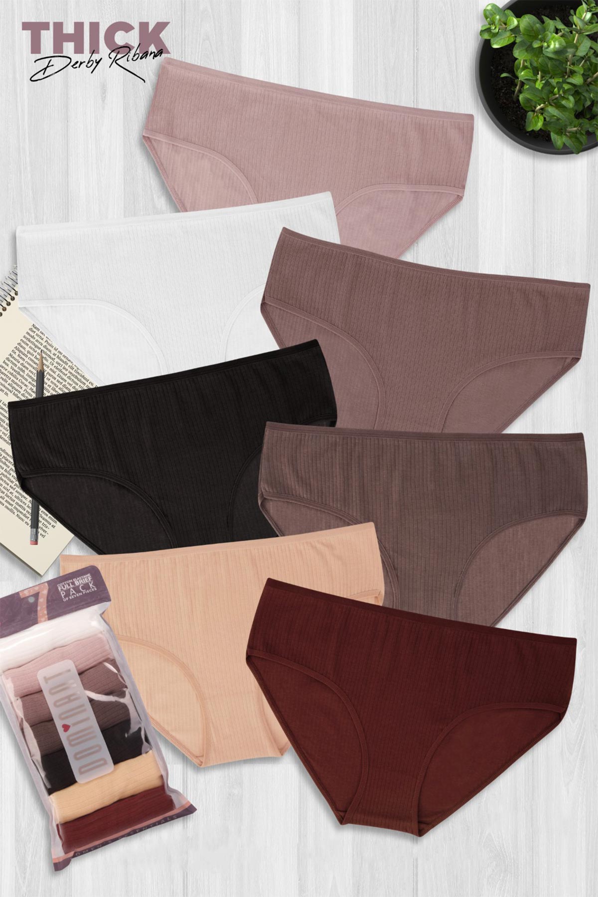 Dominant Kadın Bato Külot Yüksek Bel Büyük Beden 7'li Pamuk - Asorti