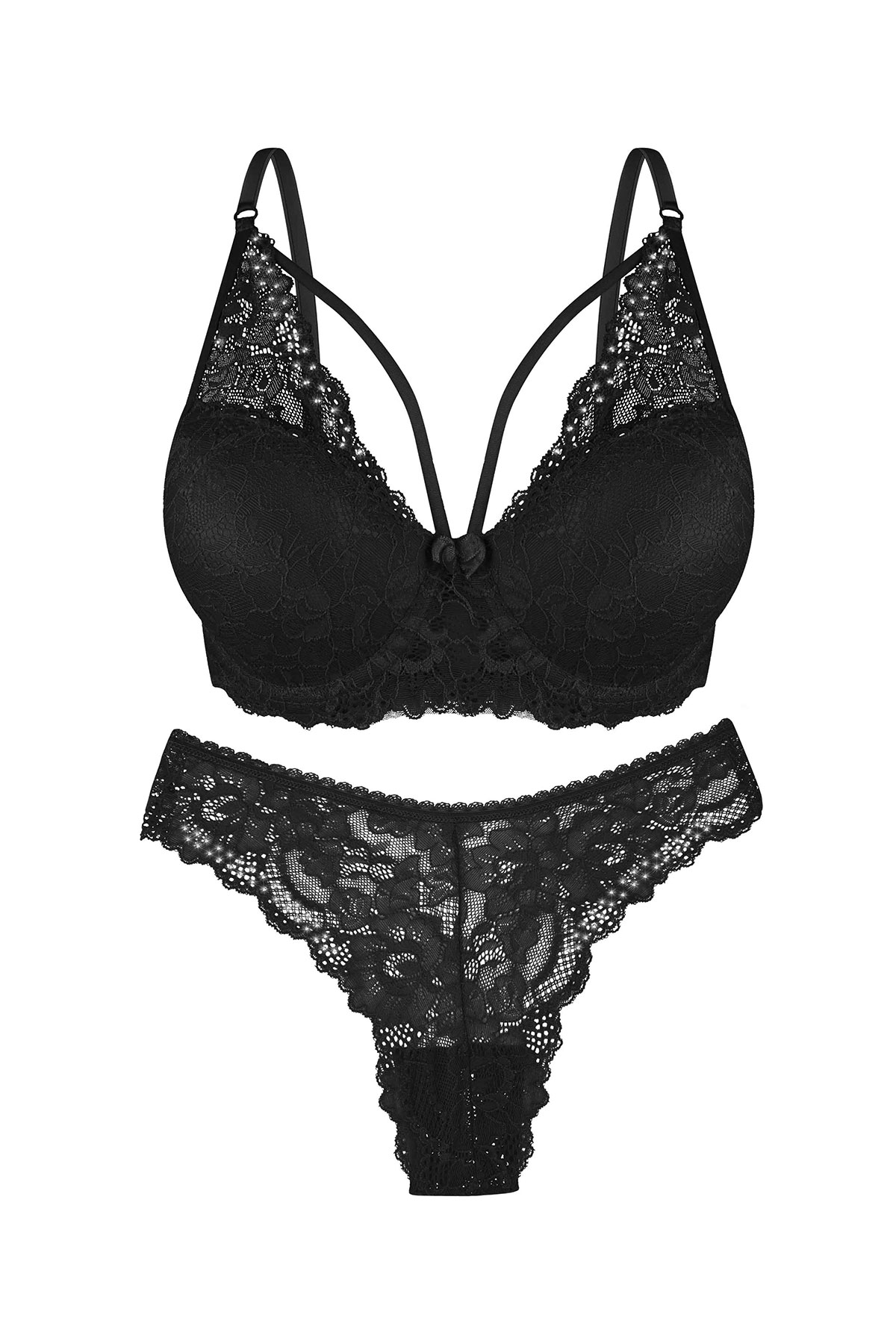 Dominant Kadın Sütyen Külot Takım Destekli İpli Taşlı - Siyah