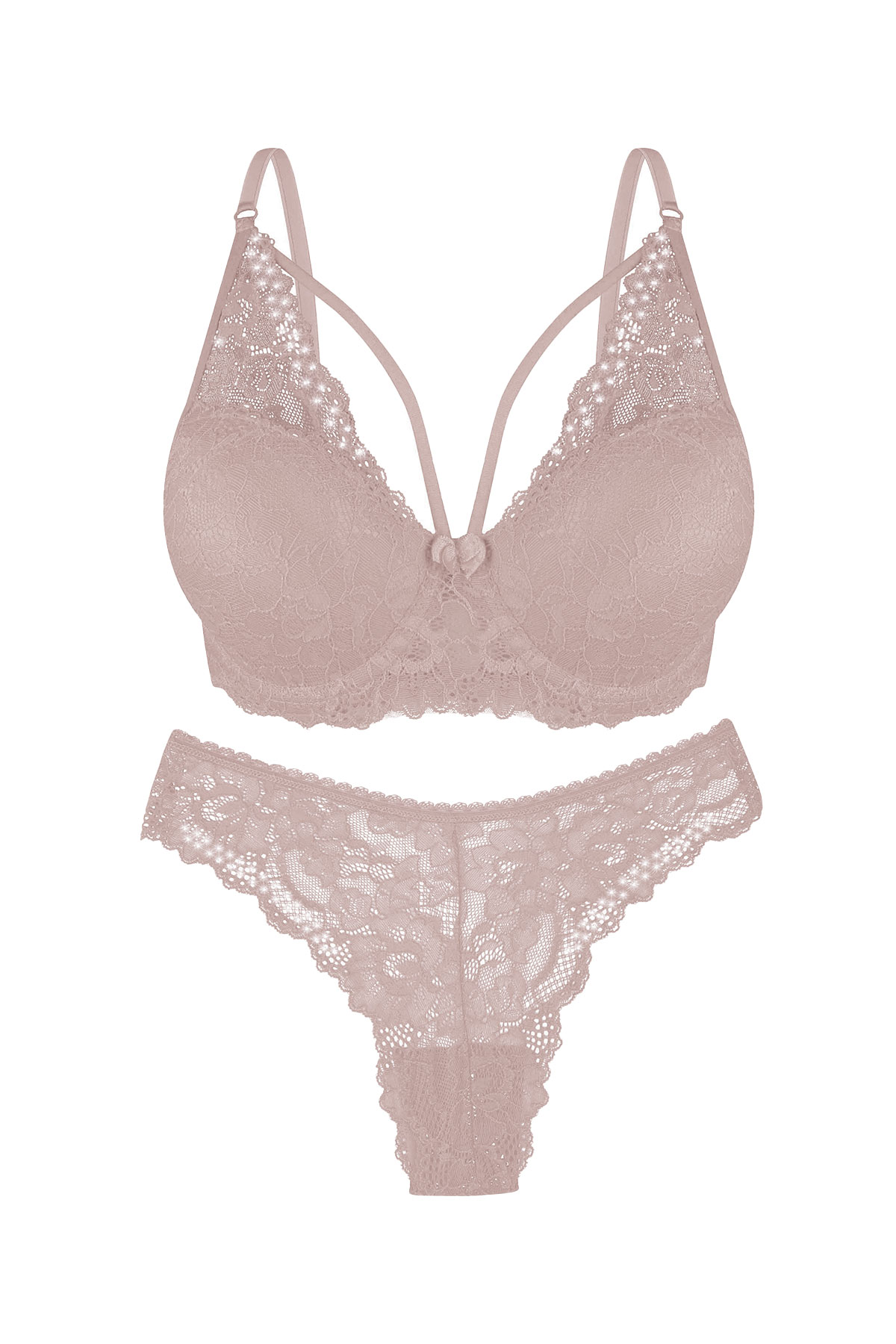 Dominant Kadın Sütyen Külot Takım Destekli İpli Taşlı - Vizon