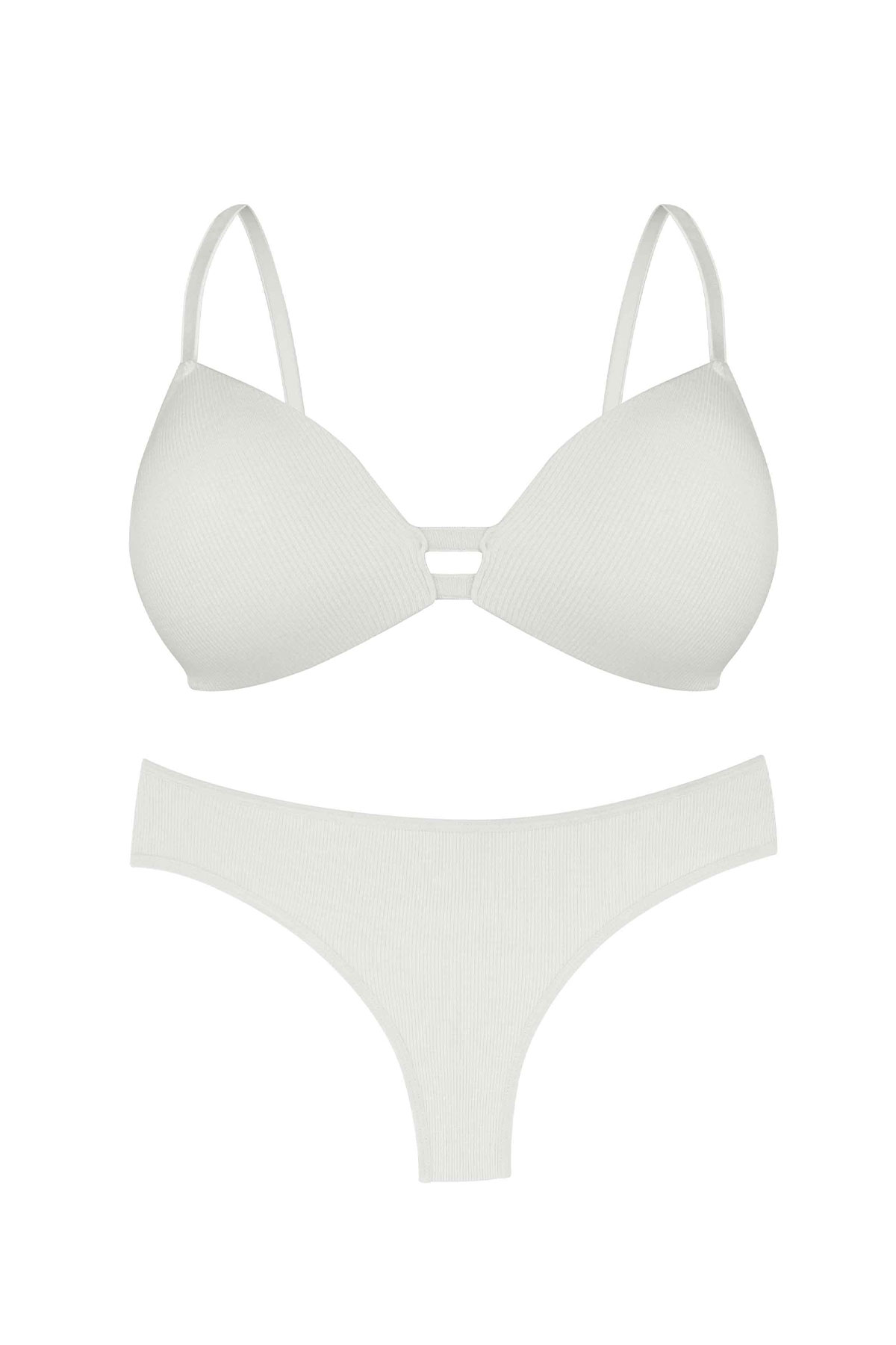 Dominant Kadın Sütyen Külot Takım Destekli Yan Dantel Detaylı - Ekru