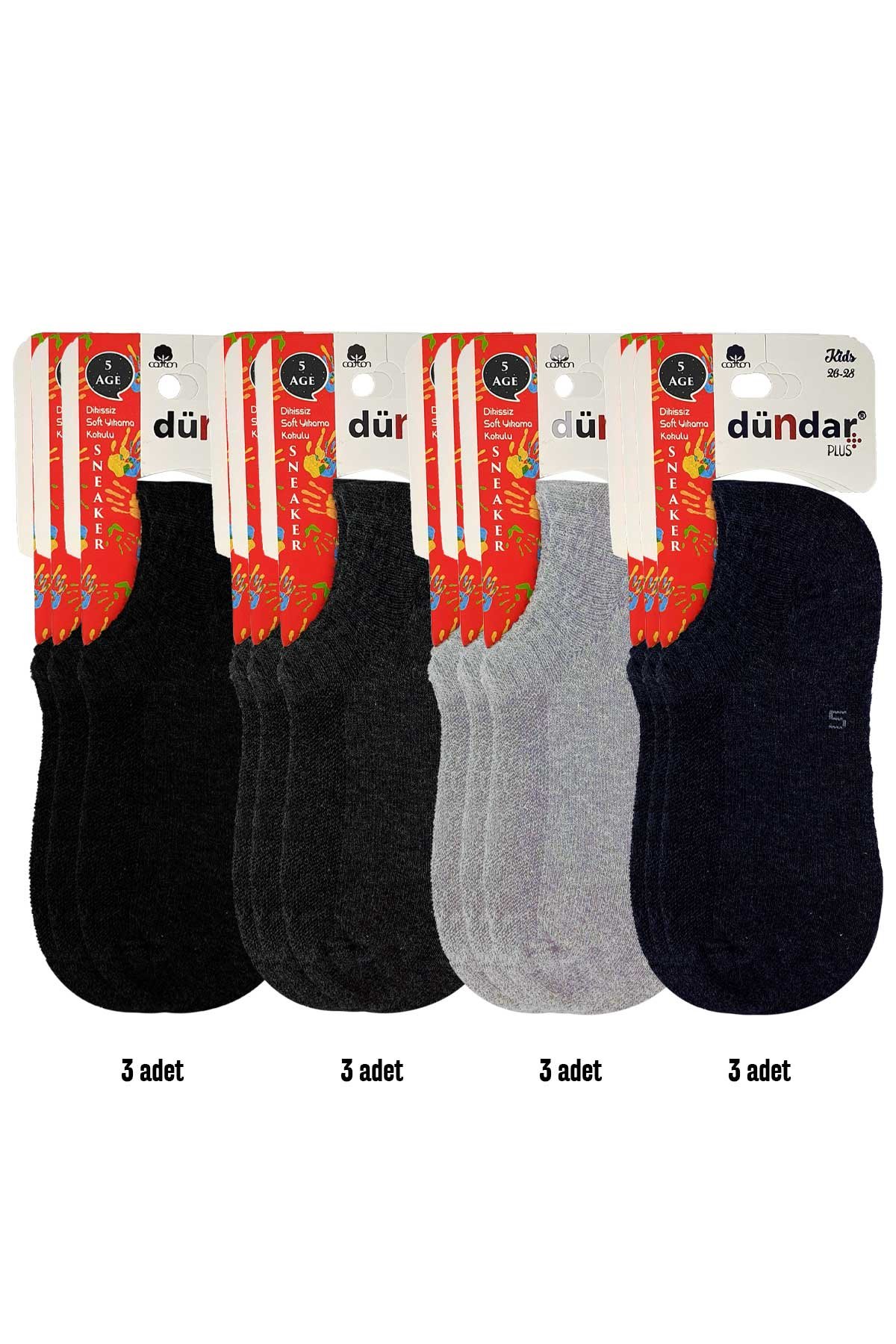Dündar Plus Unisex Çocuk Sneaker Çorap Pamuklu Dikişsiz - Melanj Asorti - 11