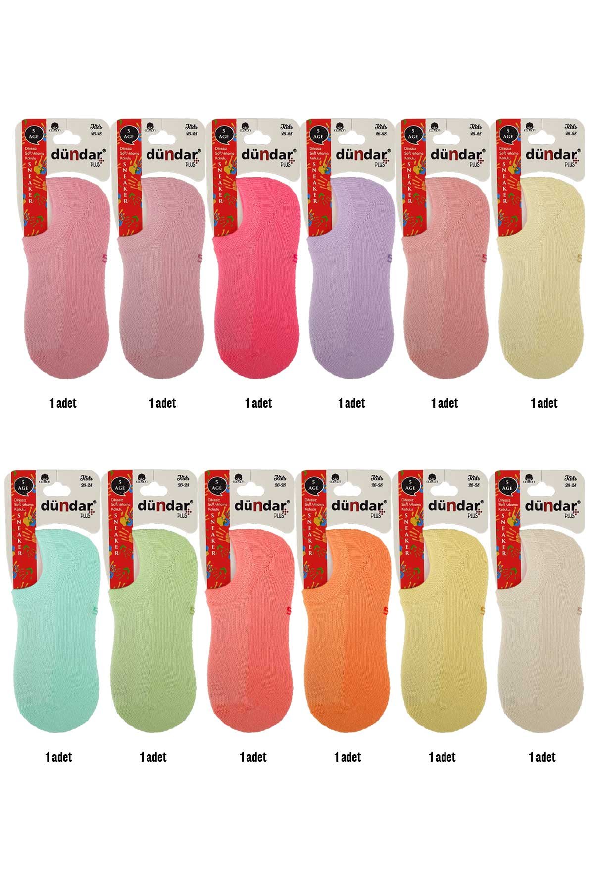 Dündar Plus Unisex Çocuk Sneaker Çorap Pamuklu Dikişsiz - Pastel Asorti - 5