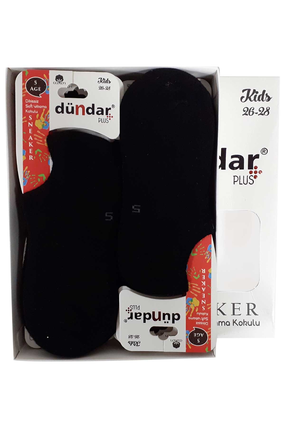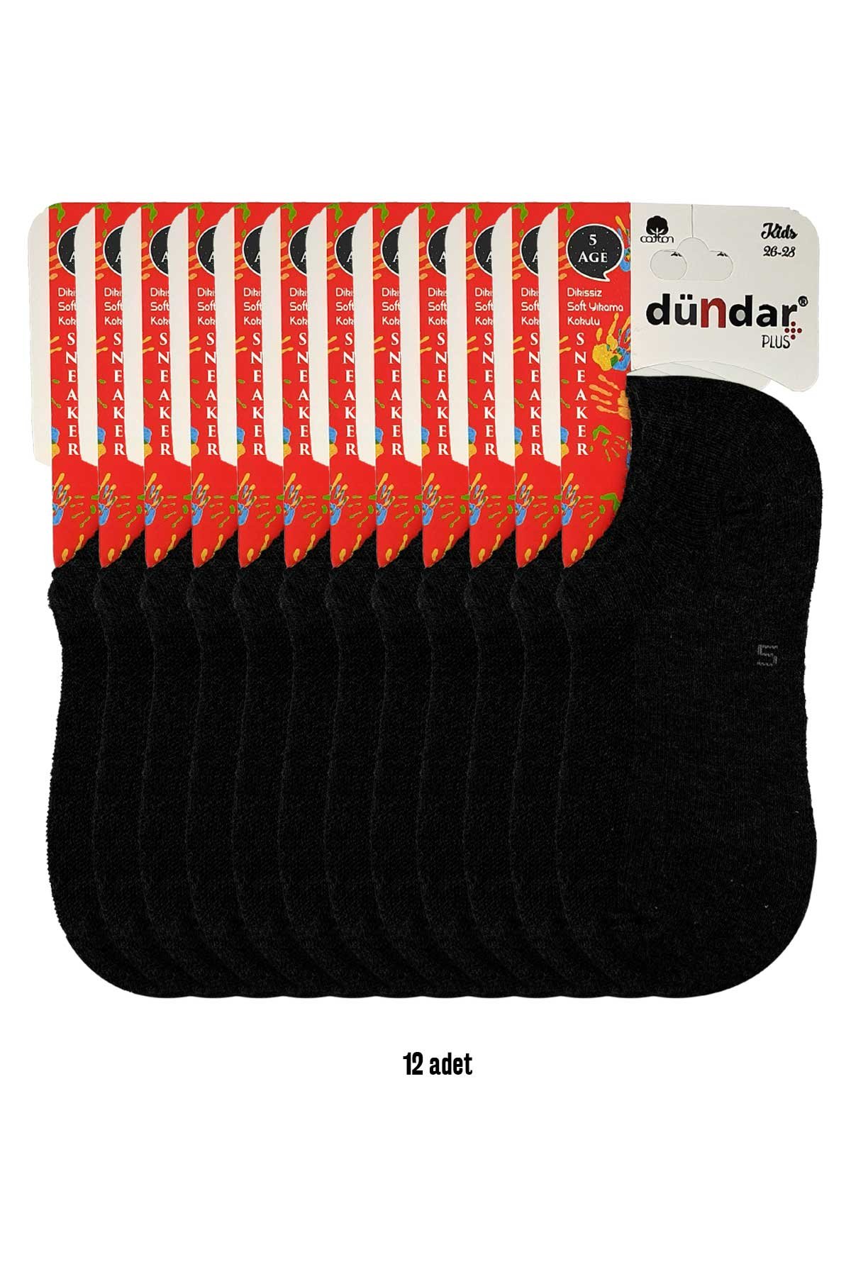 Dündar Plus Unisex Çocuk Sneaker Çorap Pamuklu Dikişsiz - Siyah - 7