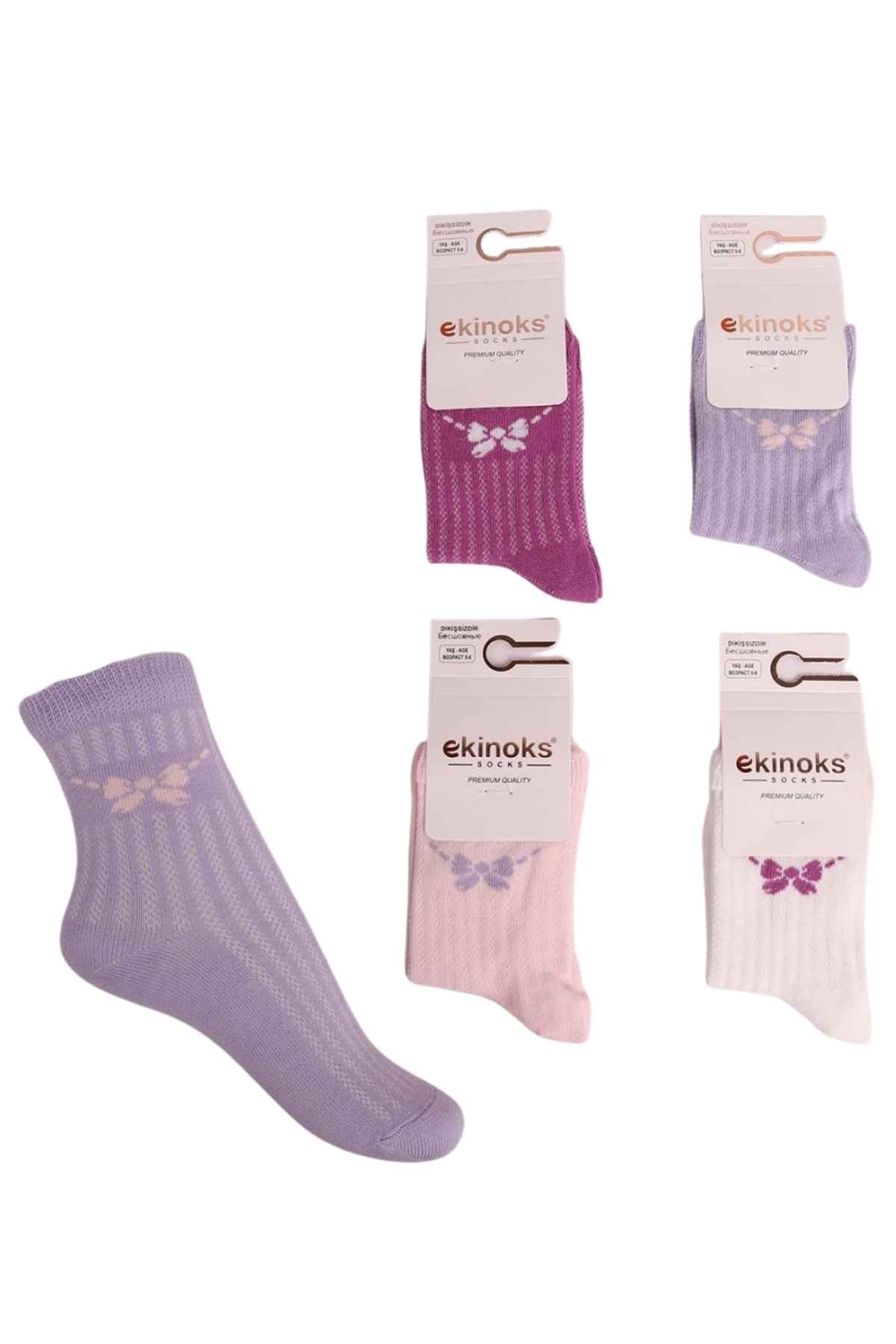 Ekinoks Kız Çocuk Fiyon Desenli Soket Çorap