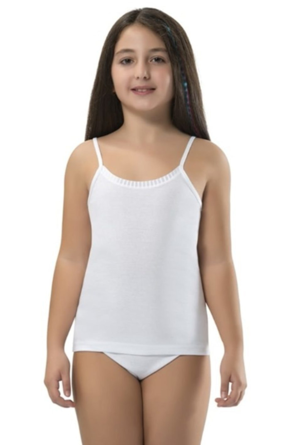 Erdem Kız Çocuk İp Askılı Piliseli Pamuk Atlet Beyaz - Beyaz - 13-14 Yaş