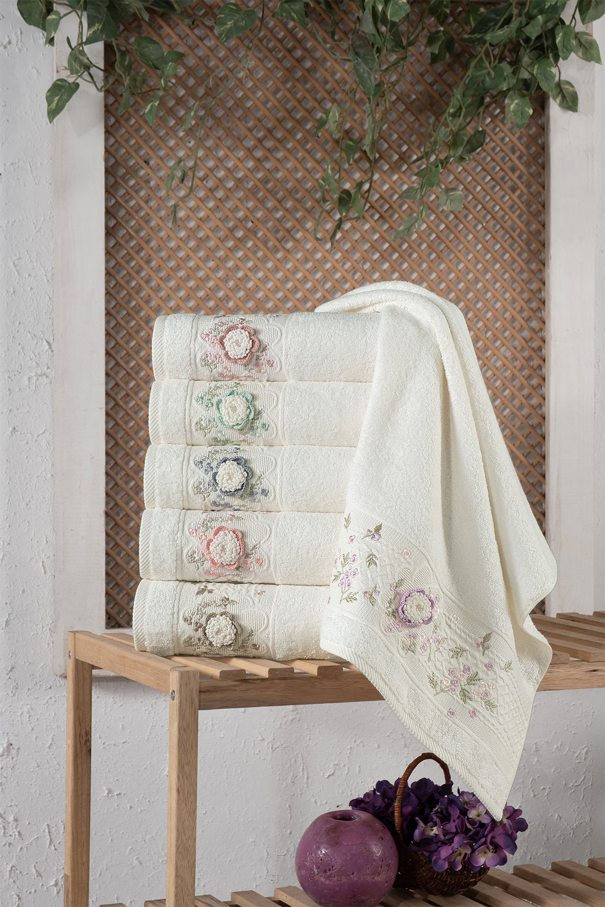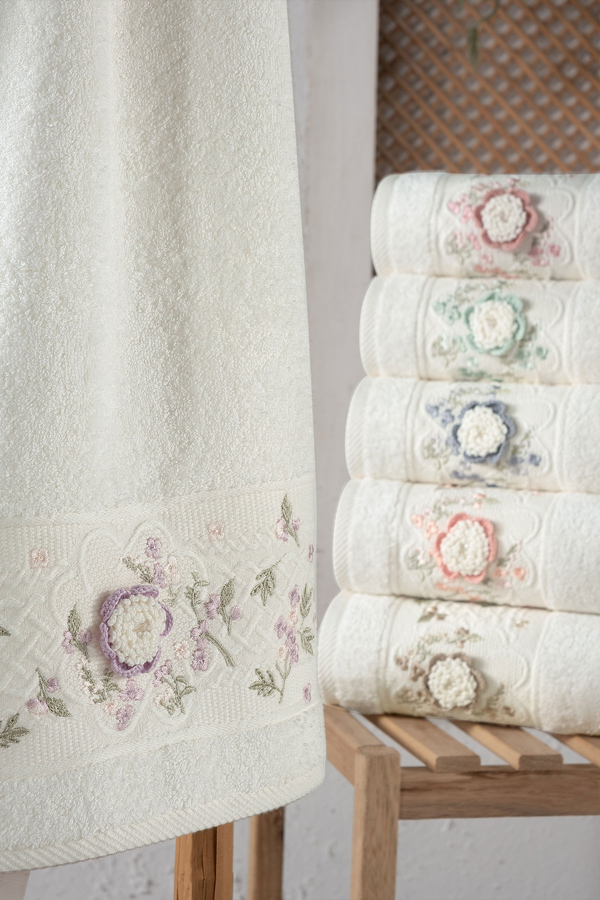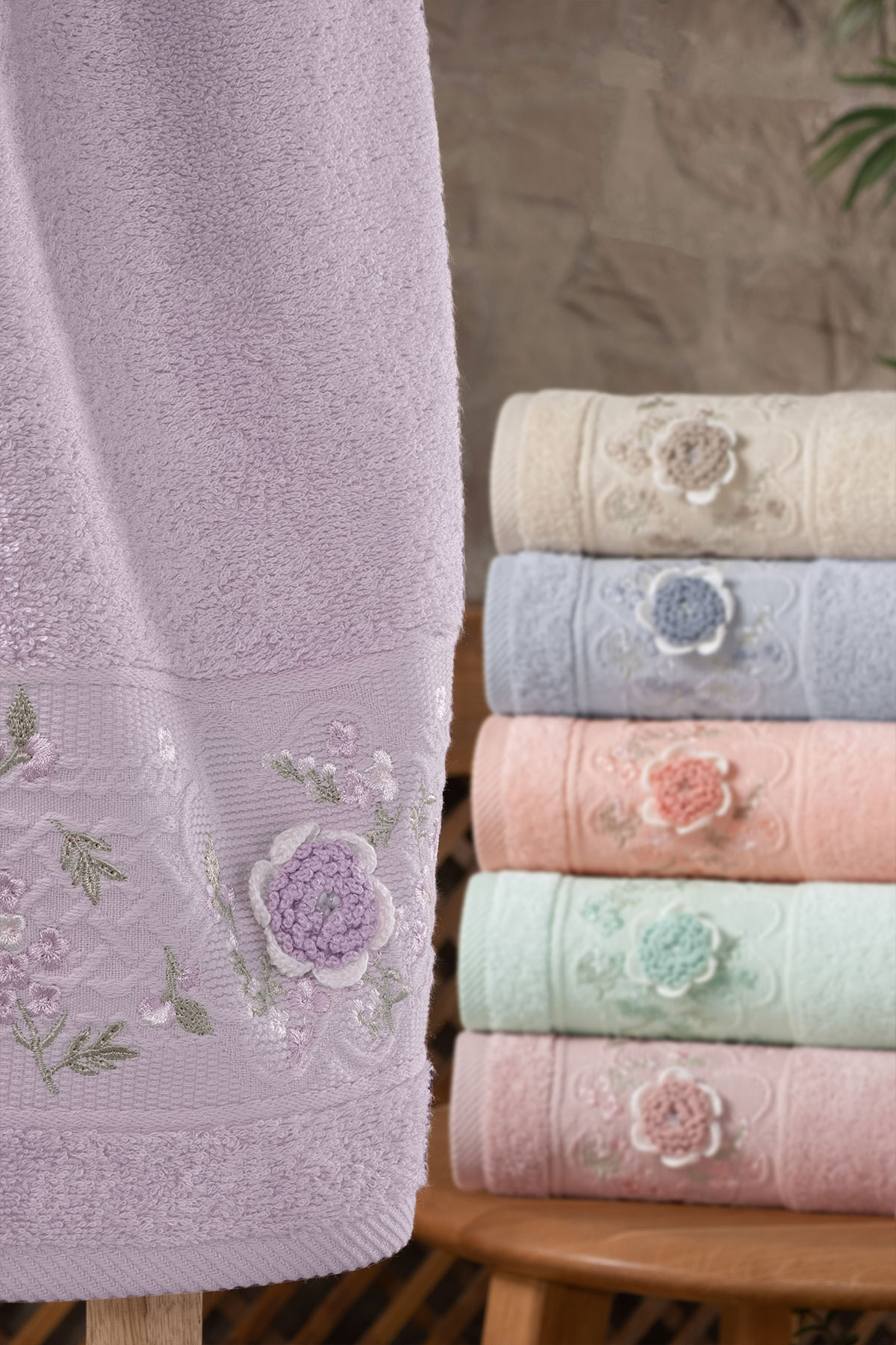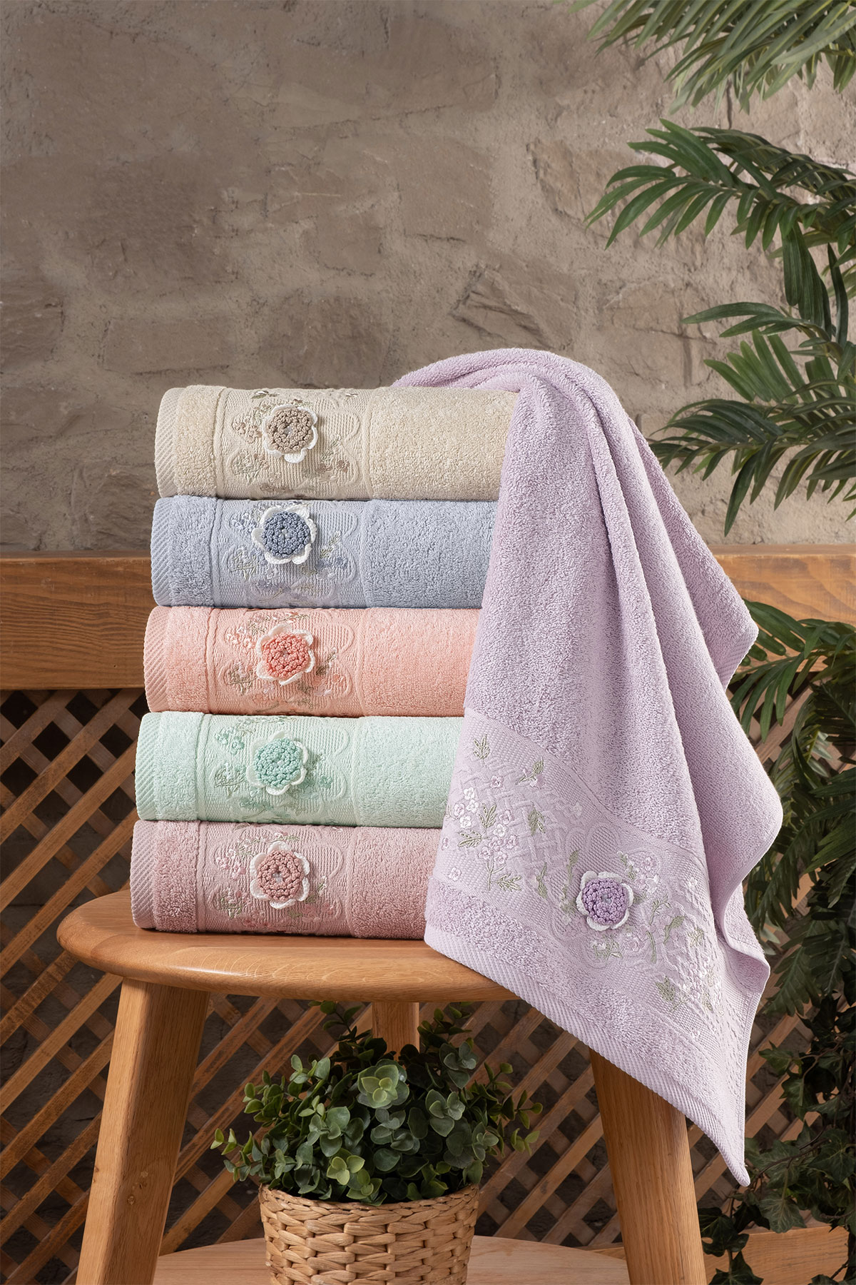 Fiesta Analı Kızlı Havlu Seti Gonca El İşi Nakışlı Bambu 30x50 50x90