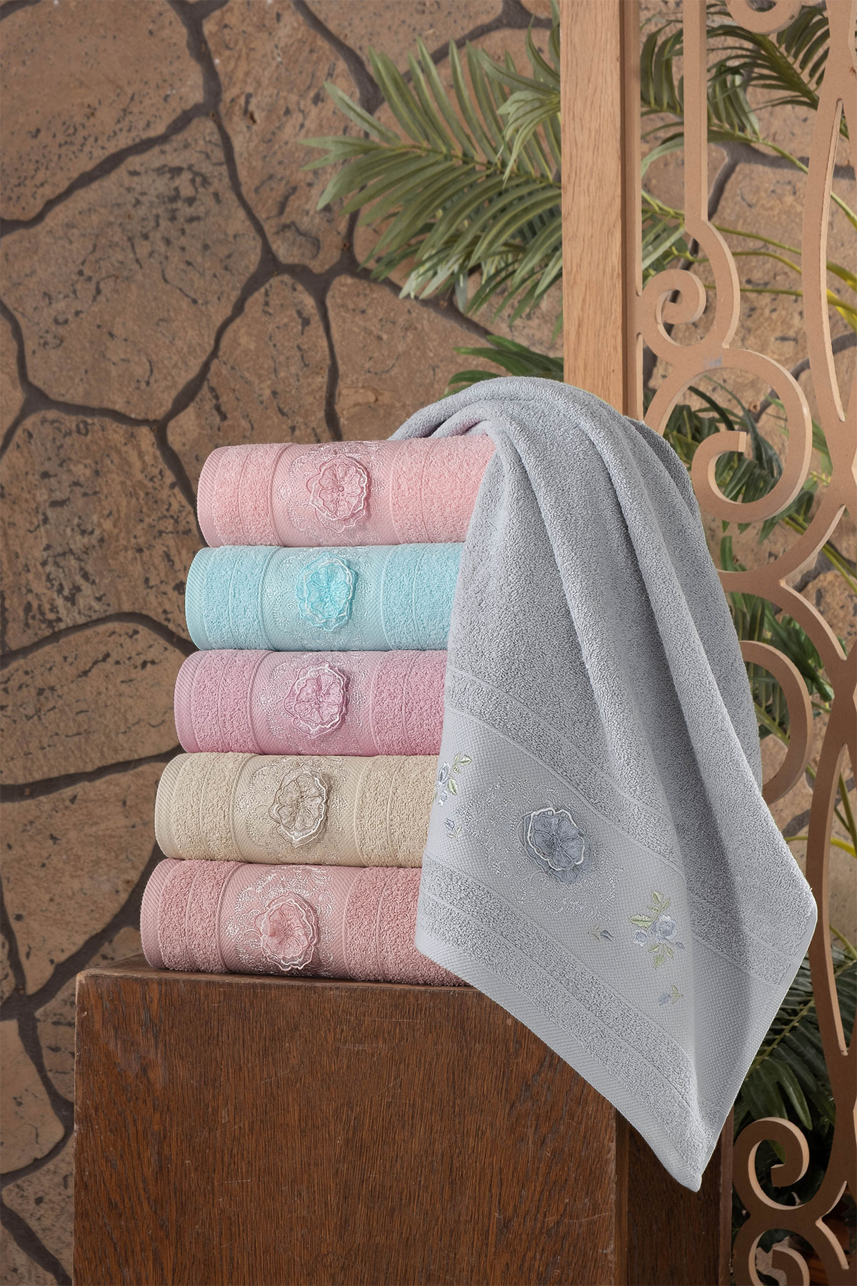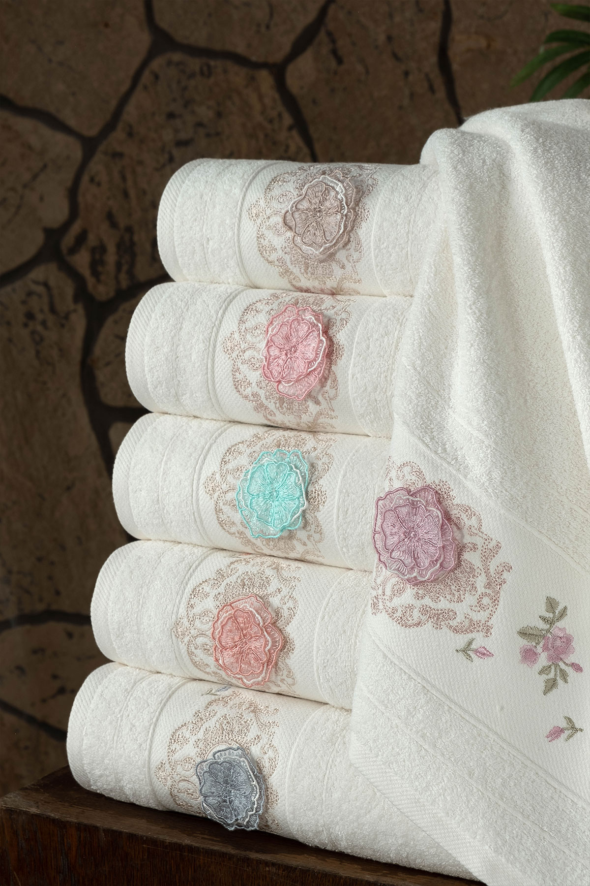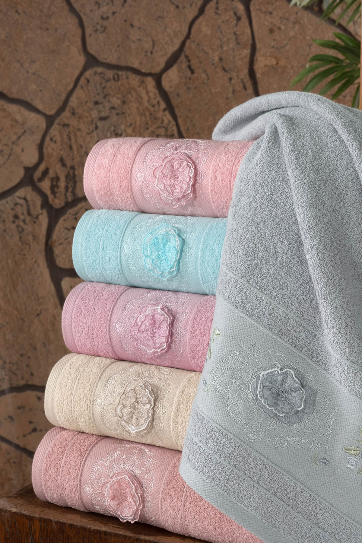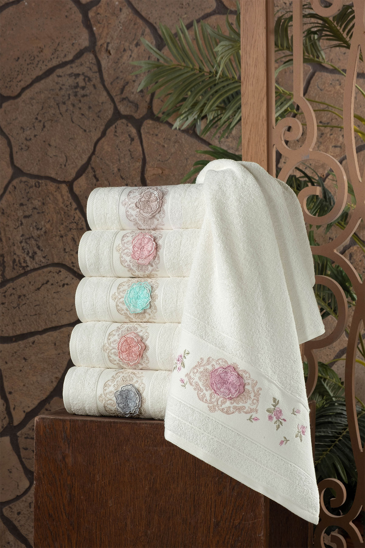 Fiesta Analı Kızlı Havlu Seti Hera El İşi Nakışlı Bambu 30x50 50x90