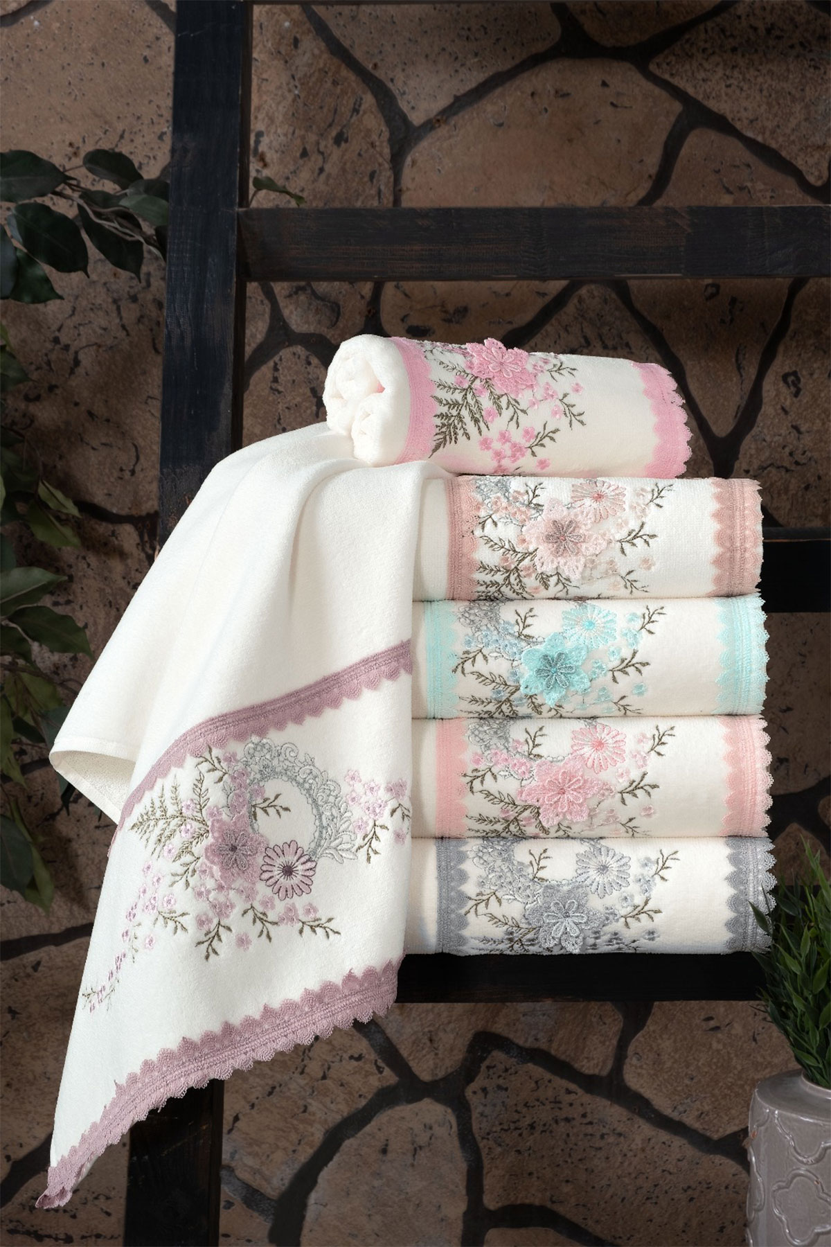 Fiesta Analı Kızlı Havlu Seti Viva El İşi Nakışlı Bambu 30x50 50x90