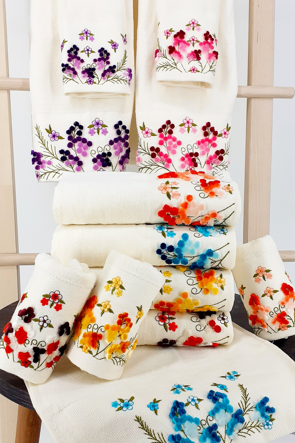 Fiesta El Yüz Havlusu Nakışlı Dallı Çiçekli Taftink Soft Kadife 50x90+30x50