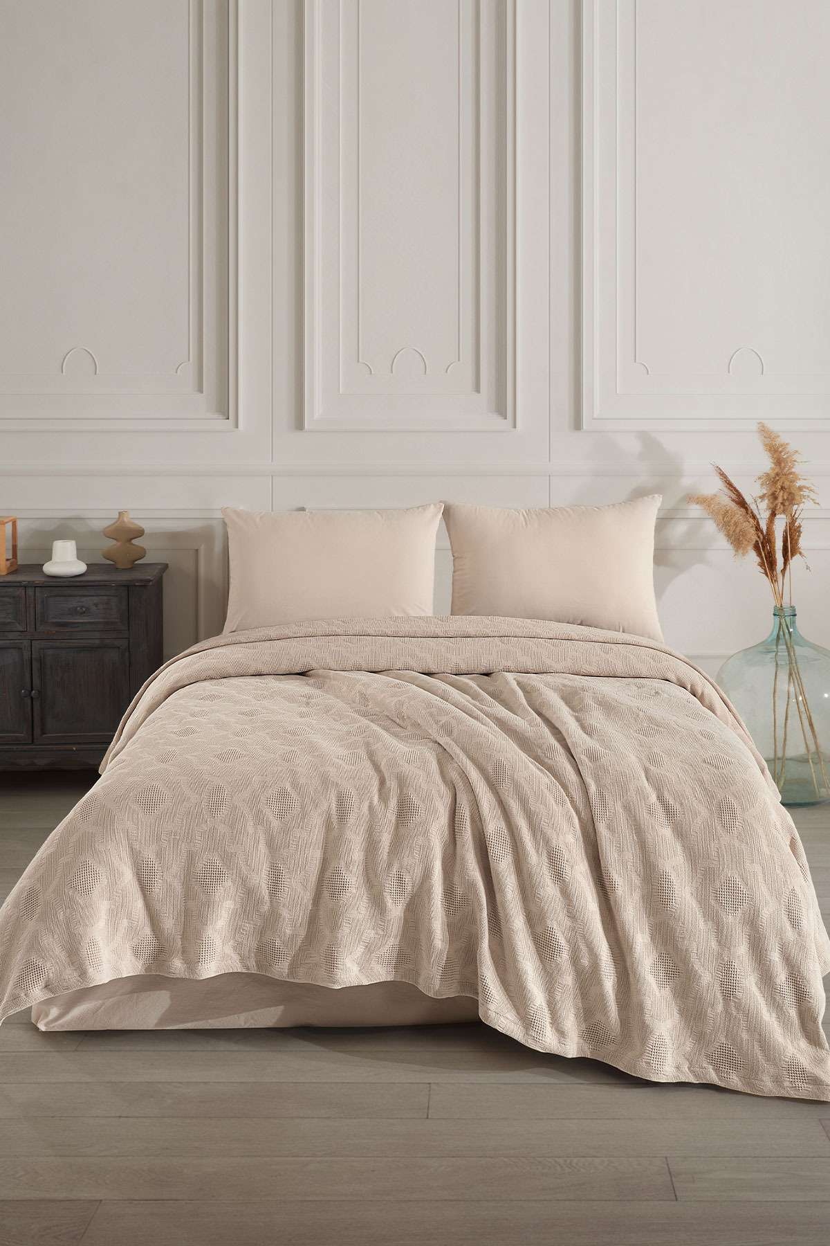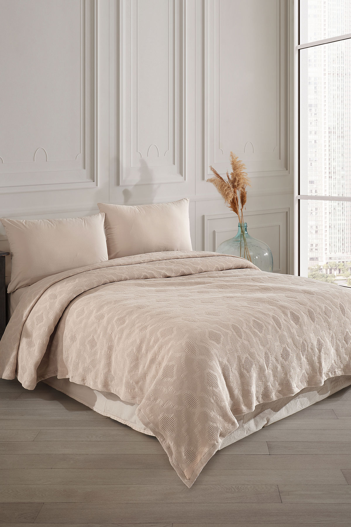 Fiesta Pike Set Çift Kişilik Natural Jakarlı Sahra Pamuklu 220x240 Cm