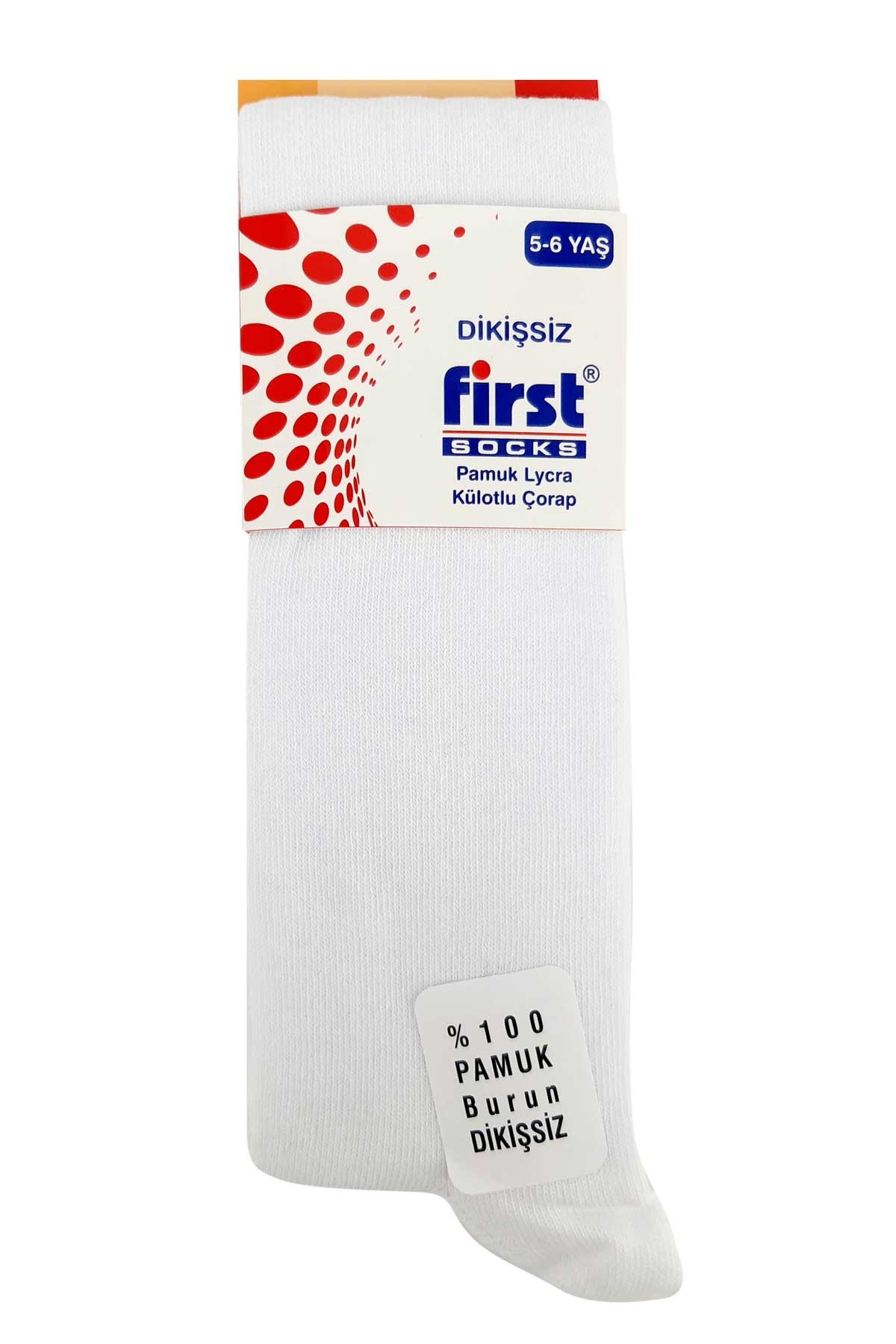 First Kız Çocuk Külotlu Çorap Düz - Beyaz - 3