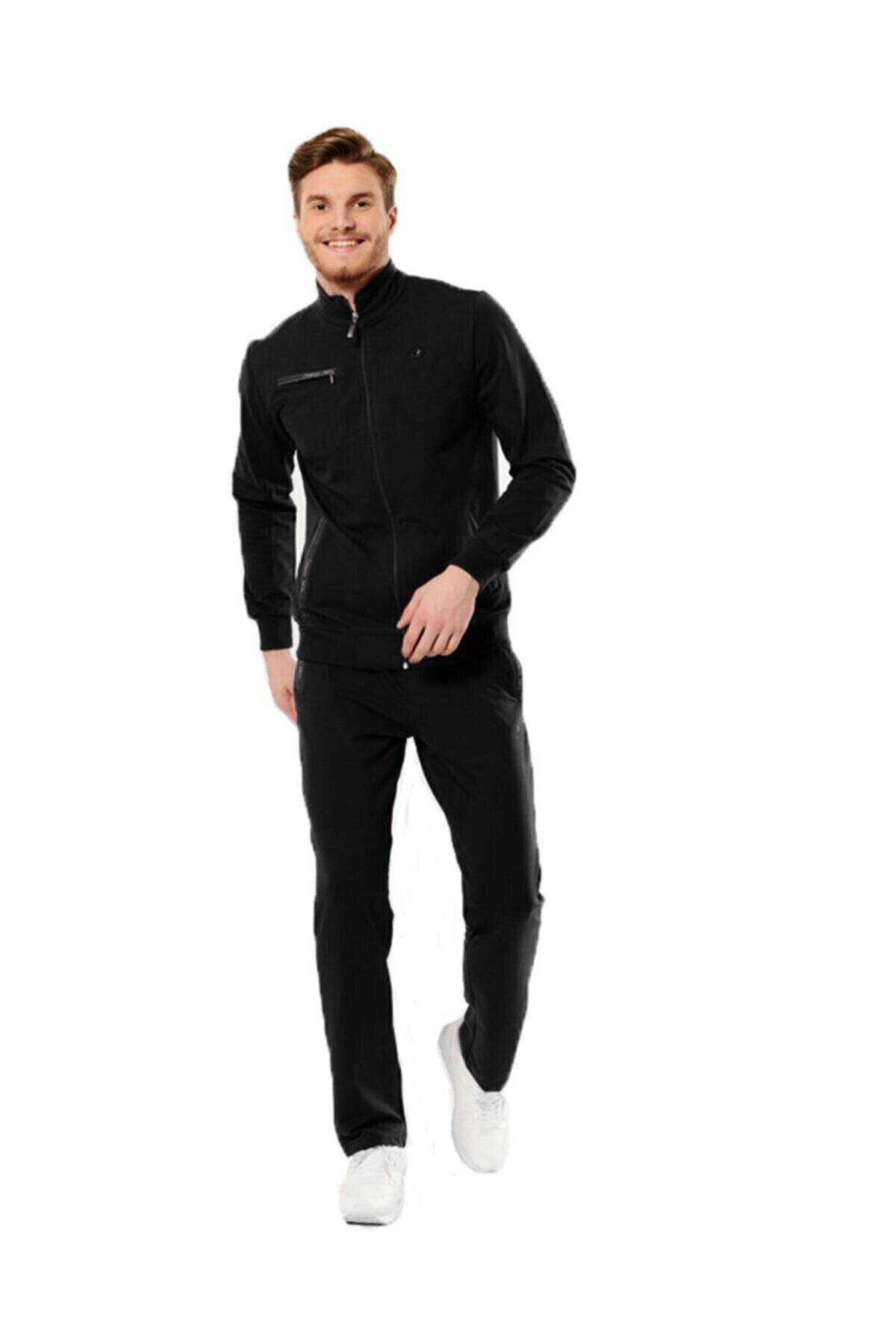 Fm Tekstil Erkek Eşofman Takım Cotton Kol Manşetli - Siyah