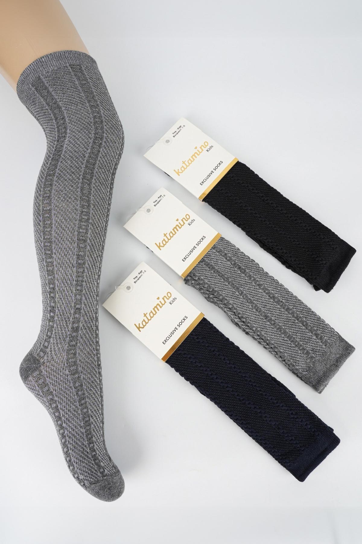 Katamino Kız Çocuk Dizüstü Çorap Şerit Desenli Pamuklu