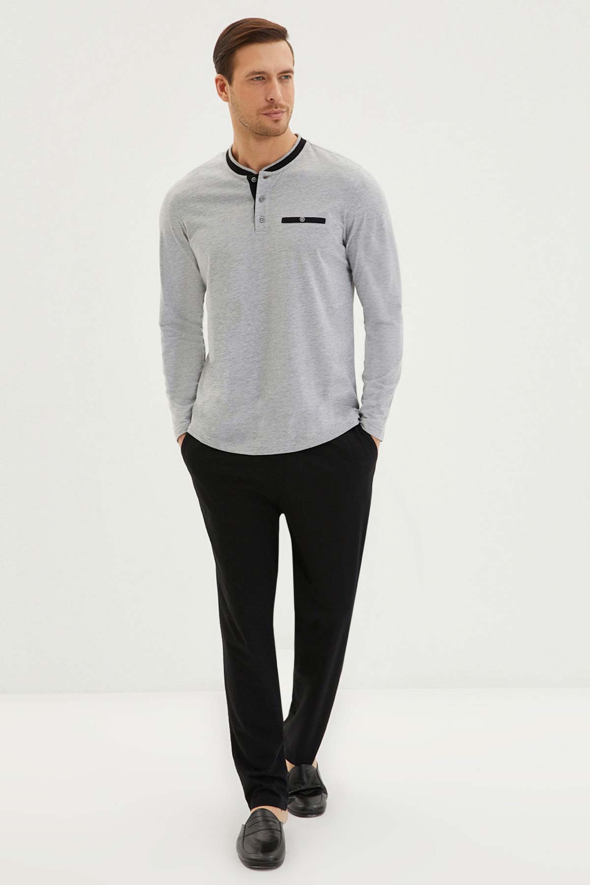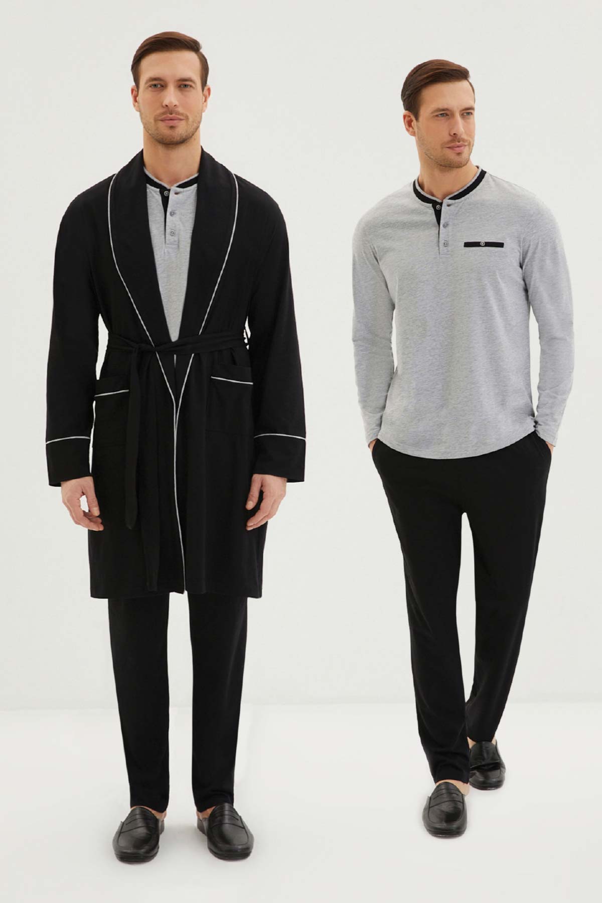Kiğılı Erkek Pijama Takımı Cepli 3 Düğmeli 3'lü Rob Takım Penye