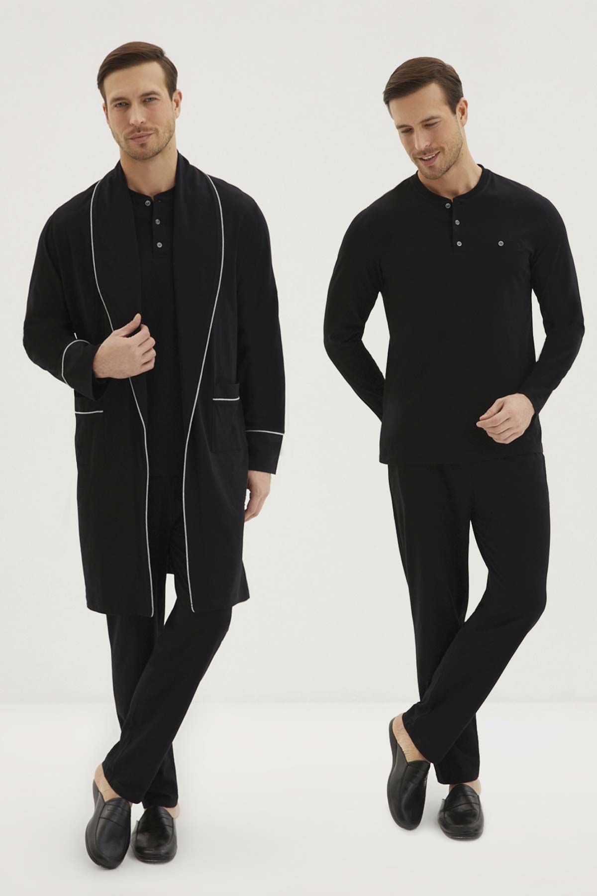 Kiğılı Erkek Pijama Takımı Cepli 3 Düğmeli 3'lü Rob Takım Penye