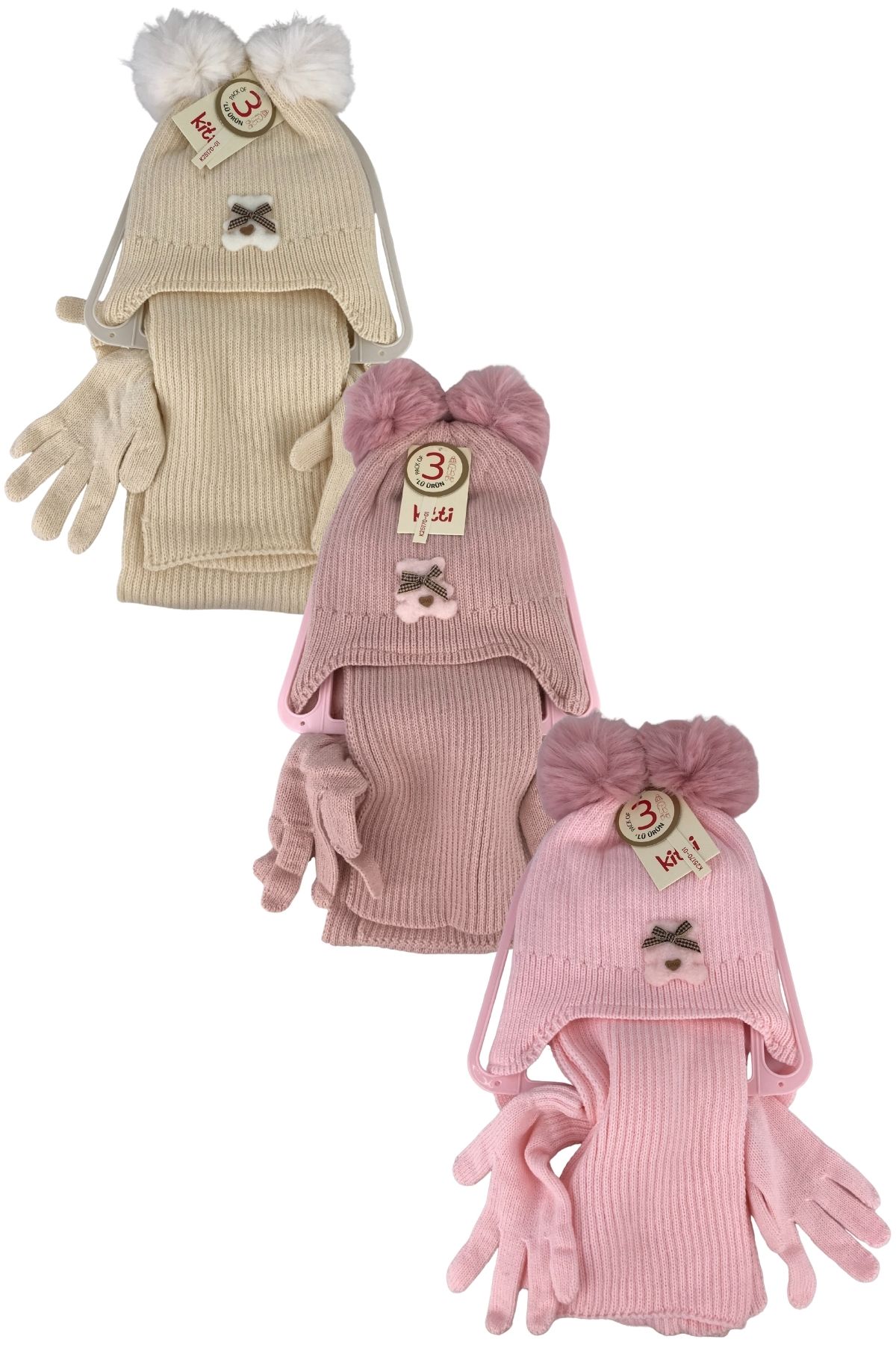 Kitti Kız Çocuk Atkı Bere Eldiven Takım Çift Ponponlu