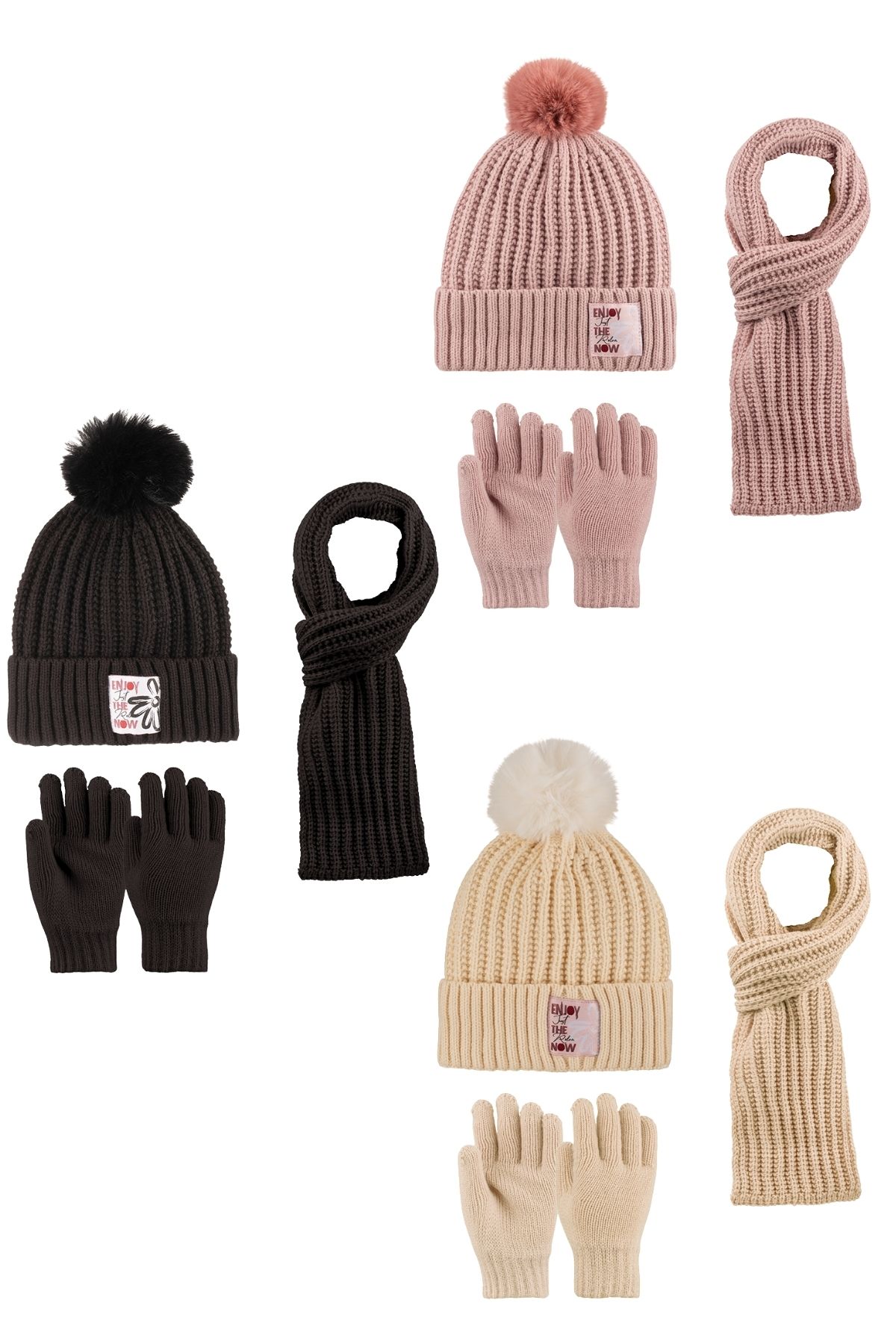 Kitti Kız Garson Atkı Bere Eldiven Takım İçi Polarlı 9-15 Yaş Ponponlu