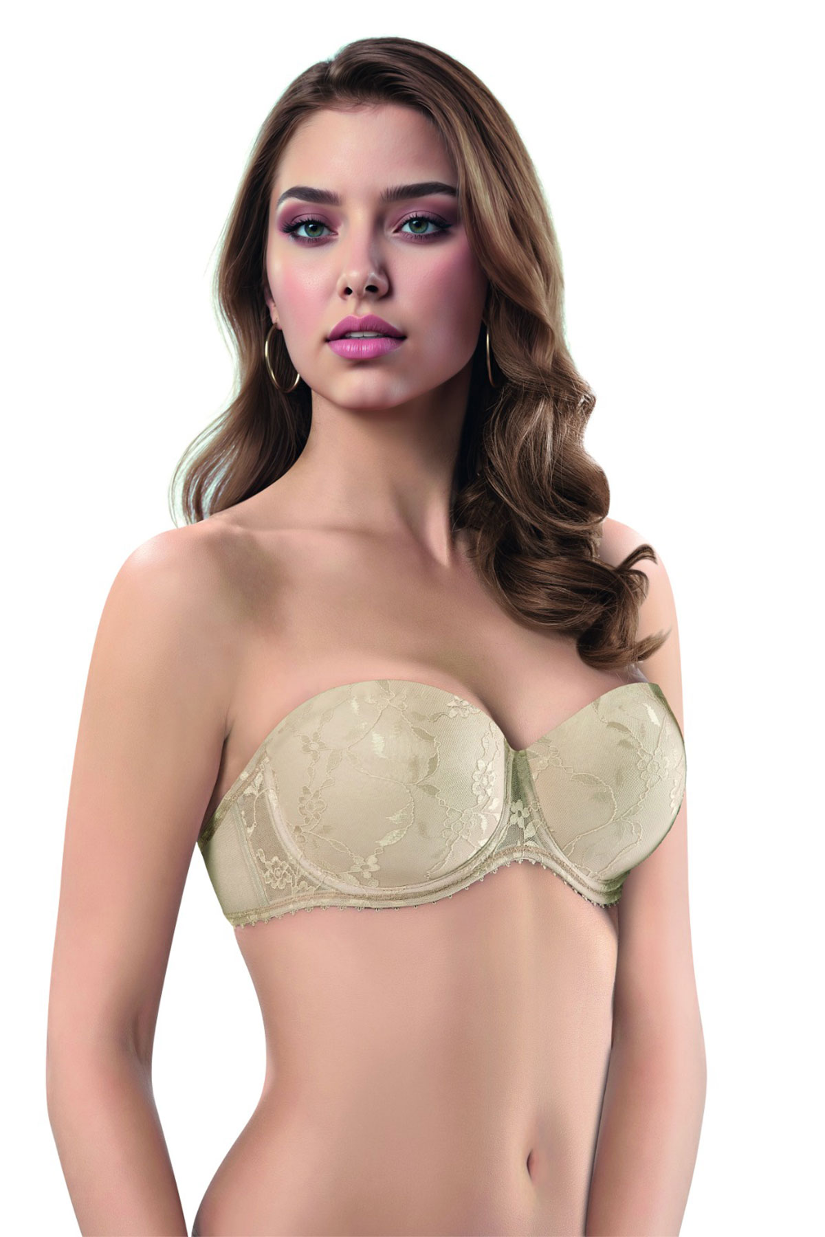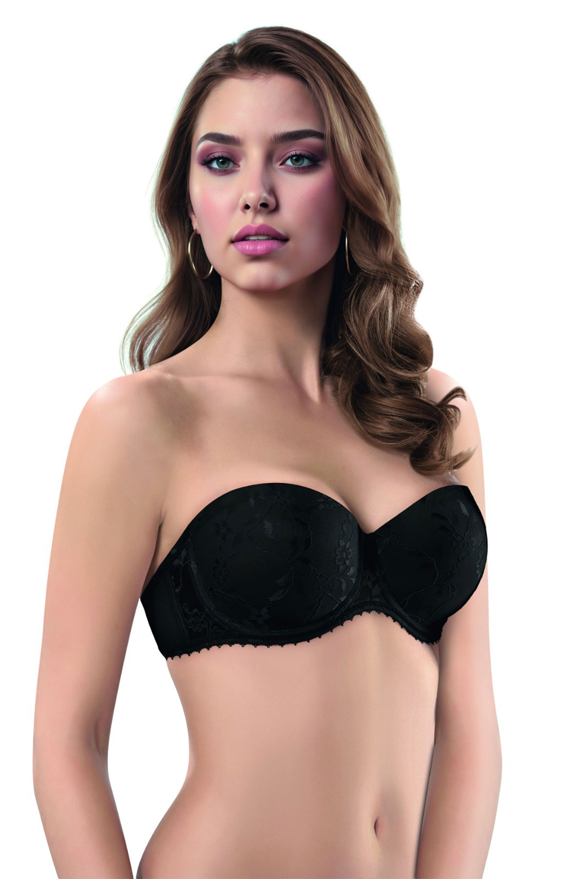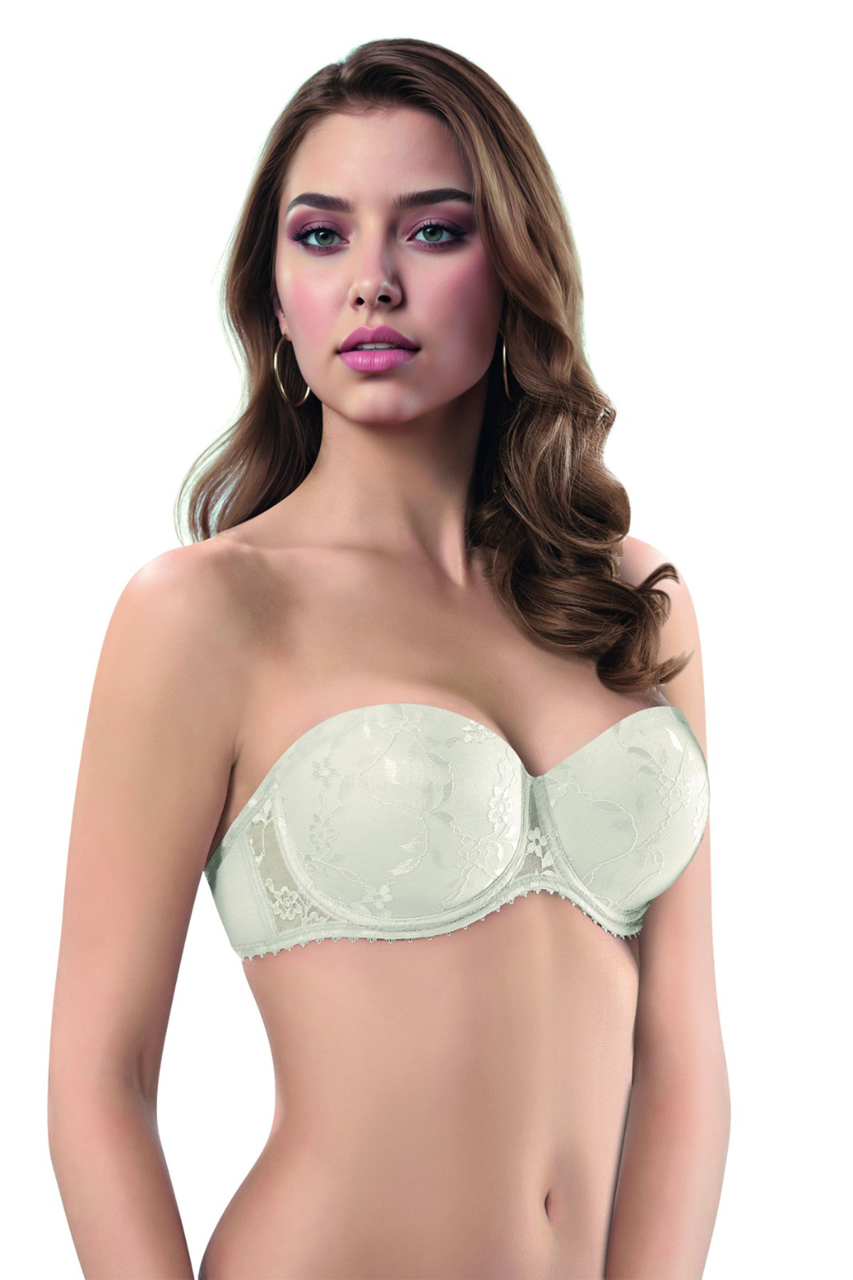 Lejardin Kadın Desteksiz Straplez Sütyen Push Up Dantel Kaplı