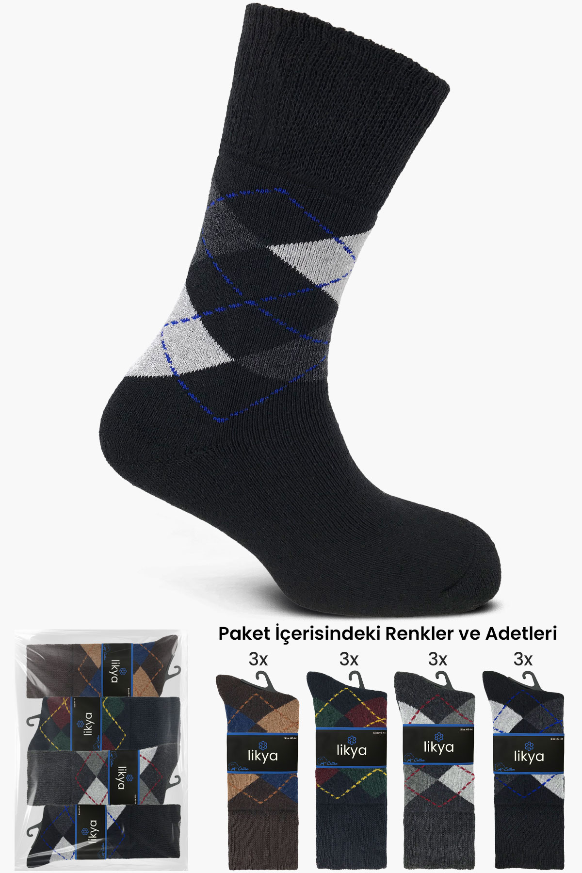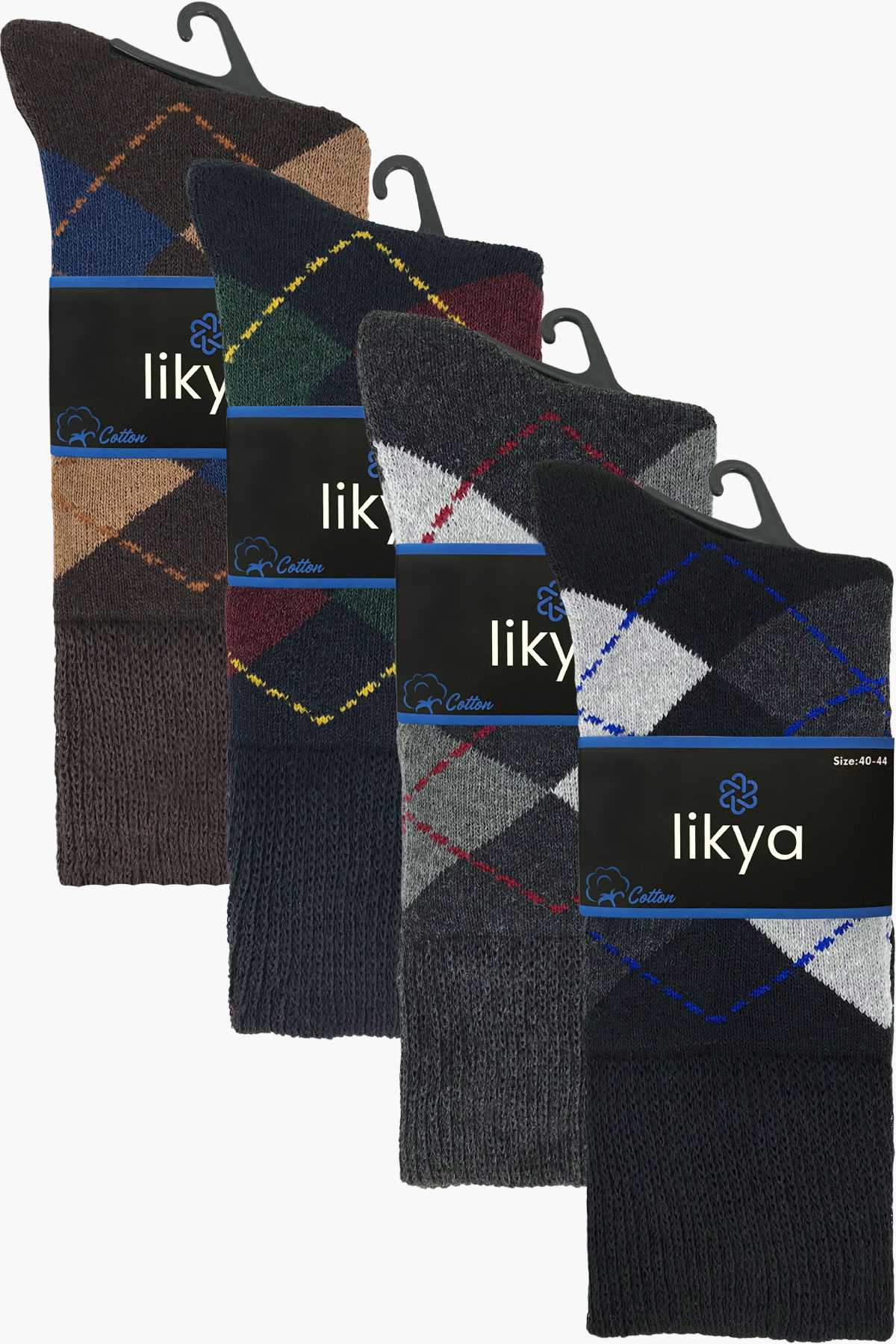 Likya Erkek Soket Çorap Havlu Pamuklu Ekose Comfort