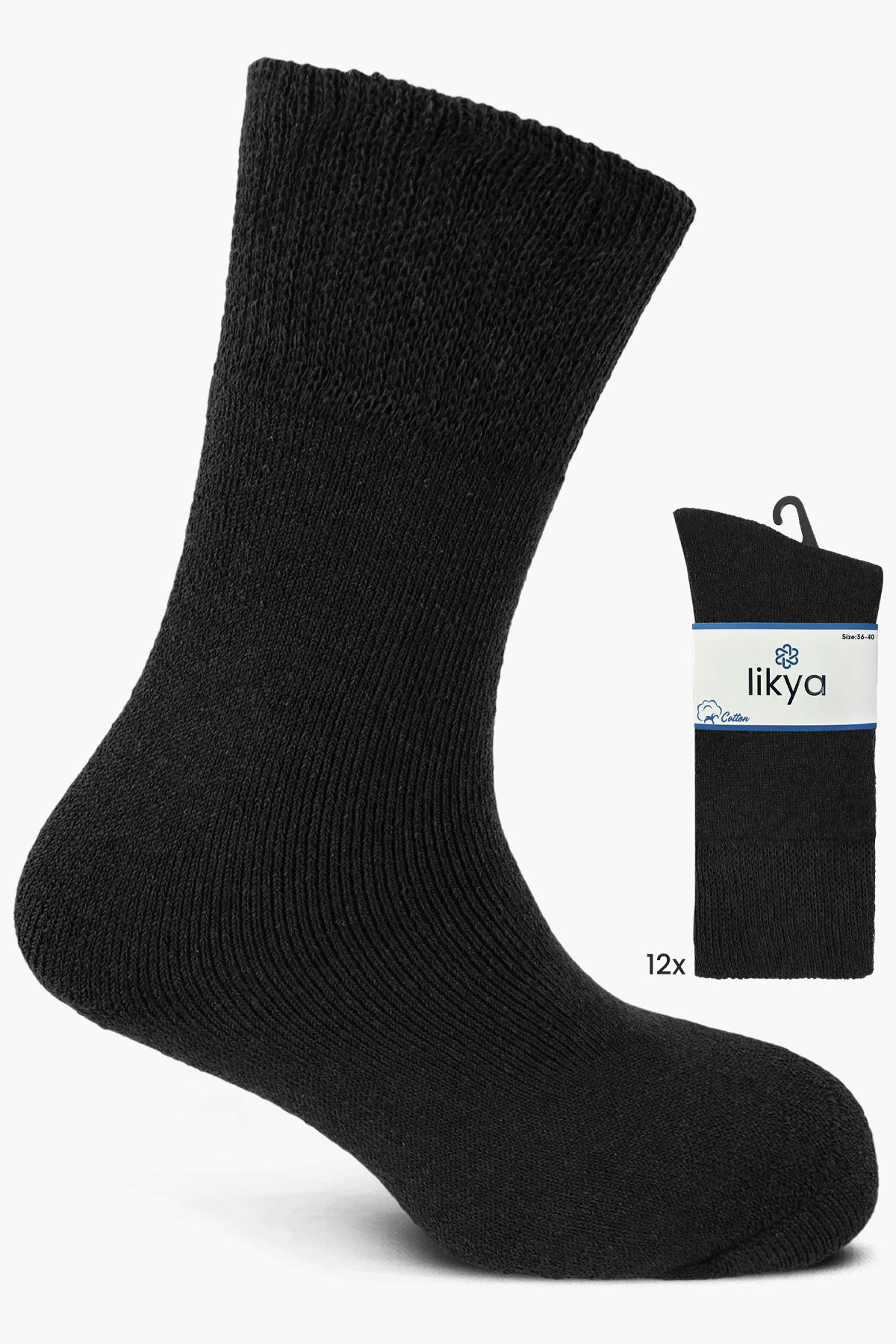 Likya Kadın Soket Çorap Havlu Düz Pamuklu ComfortGünlük yaşamda rahatlık ve konfor arayanlar için ideal bir seçenek: havlu pamuklu çoraplarımız! Yüksek kaliteli pamuk dokusu sayesinde gün boyu ayaklarınızın nefes almasını sağlar, ekstra havlu dolgusu ise üstün yastıklama ve destek sunar. Bu çoraplar, hem evde hem de dışarıda kullanabileceğiniz, şıklığı ve fonksiyonelliği bir araya getiren mükemmel bir üründür. Kışın vazgeçilmezidir!Kumaş Özellikleri:· %88 PAMUK %10 POLYESTER %2 ELASTANBeden Aralığı:· 36-40Renk Seçenekleri:· Siyah Özellikleri:· Yumuşak ve nefes alabilir doku· Kaymaz taban özelliği· Günlük kullanım için idealGünlük hayatta vazgeçilmez bir parça olacak bu havlu pamuklu çoraplar, hem şık hem de işlevsel bir deneyim sunar. Hem kendiniz hem de sevdikleriniz için mükemmel bir hediye seçeneği. Şimdi sipariş verin ve konforun tadını çıkarın!