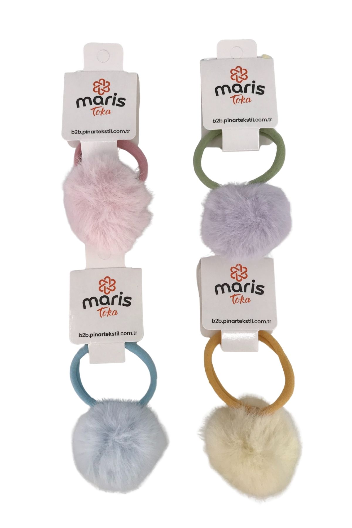 Maris Kız Çocuk Lastik Toka 2'li Ponponlu