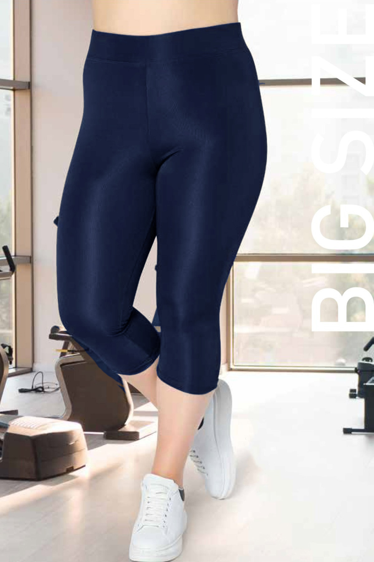 Meg Kadın Tek Alt Tayt Dizaltı Büyük Beden Disco - Lacivert