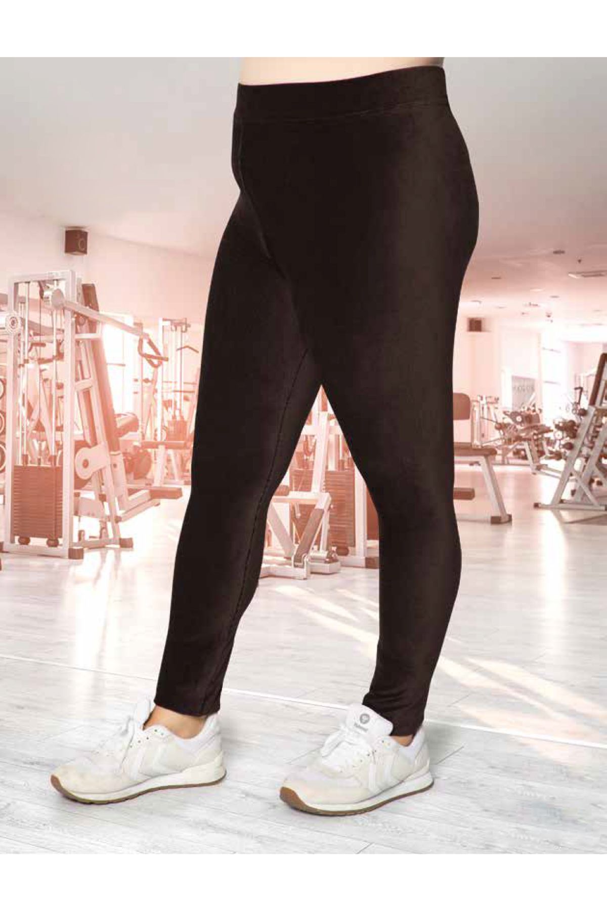Meg Kadın Tayt Fitilli Kadife Büyük Beden - Kahverengi
