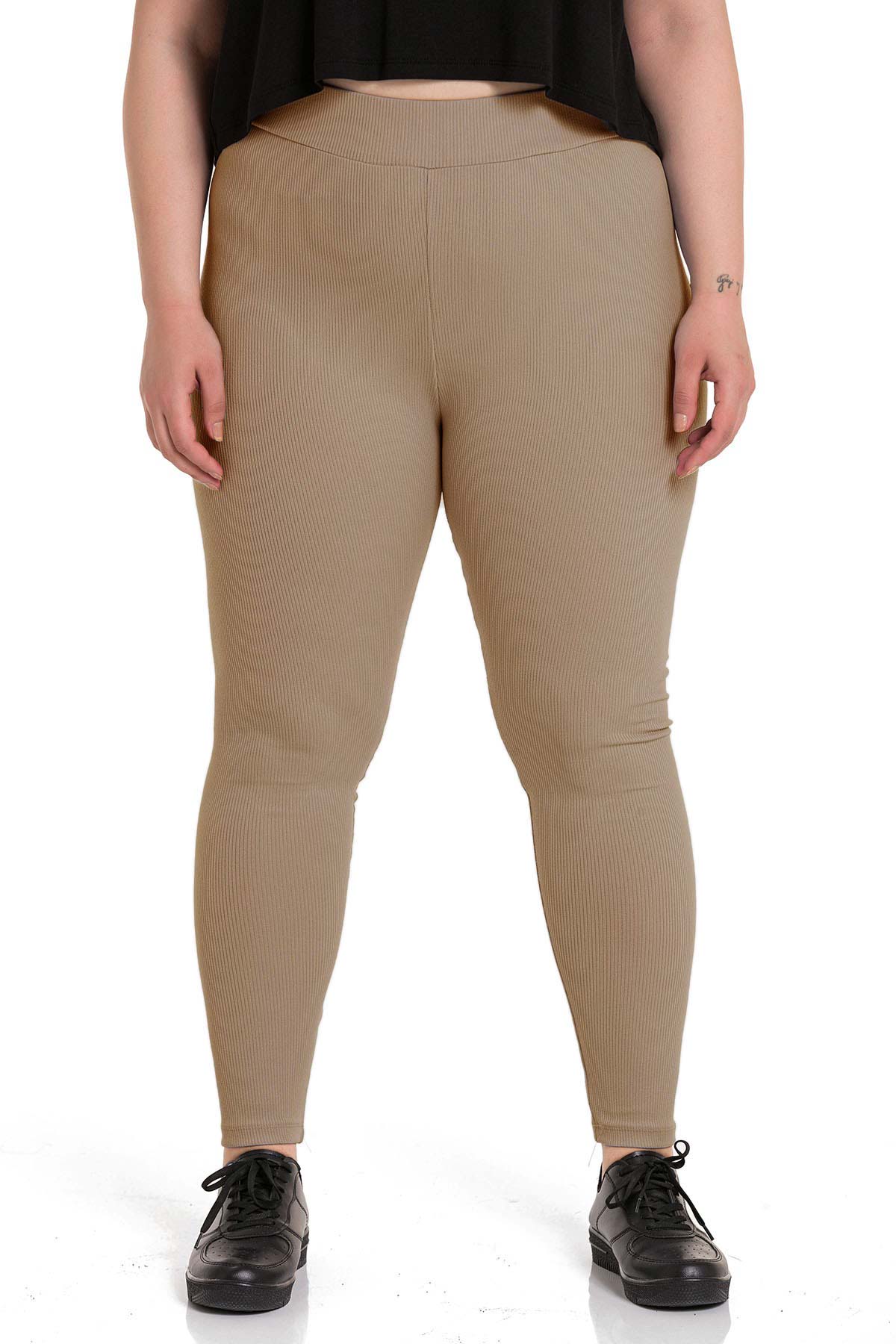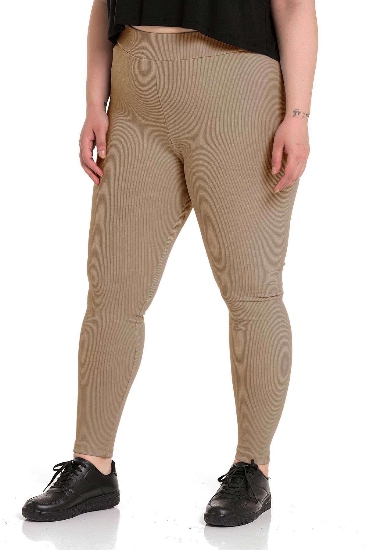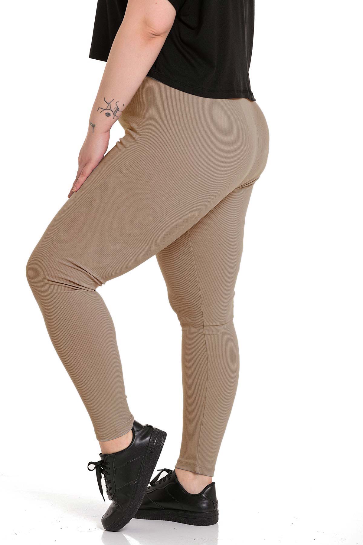 Meg Kadın Tek Alt Tayt Yüksek Bel Fitilli Büyük Beden - Bej