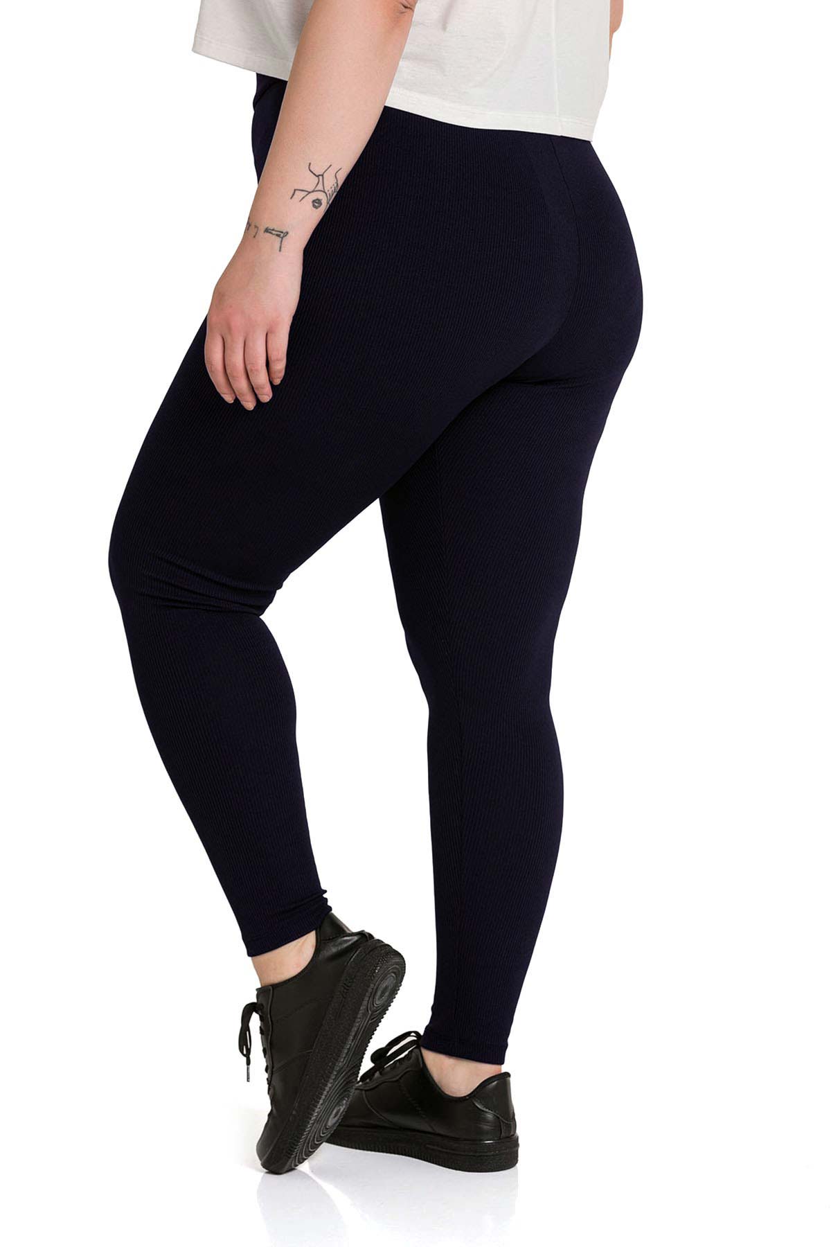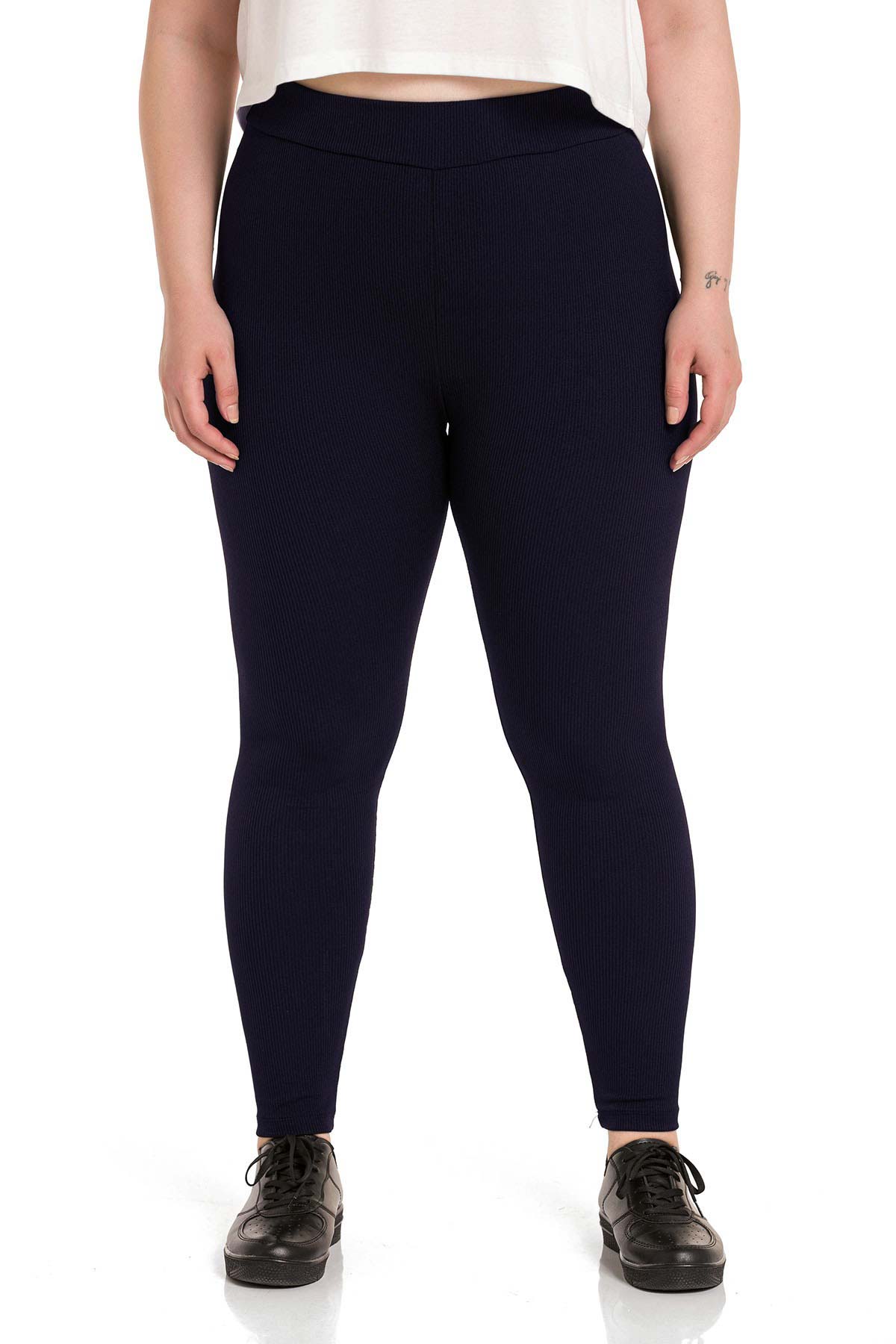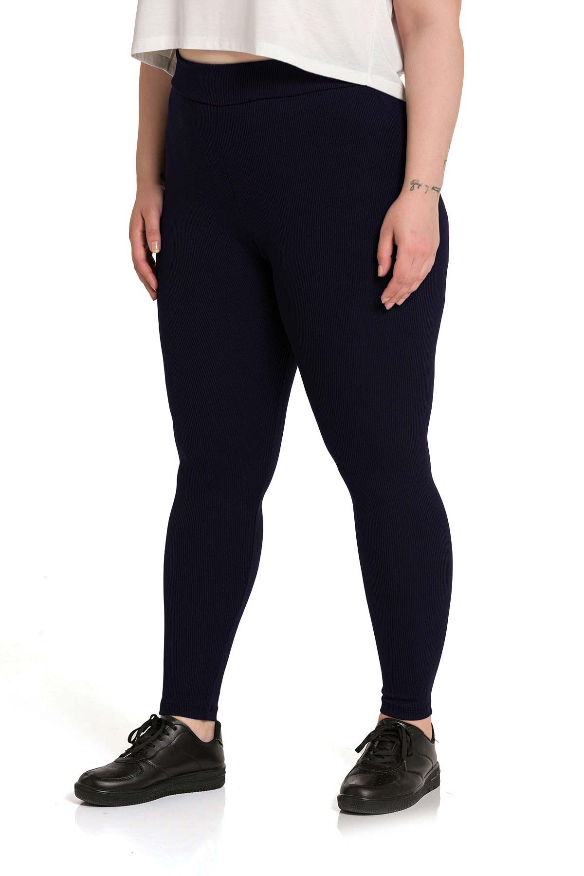 Meg Kadın Tek Alt Tayt Yüksek Bel Fitilli Büyük Beden - Lacivert