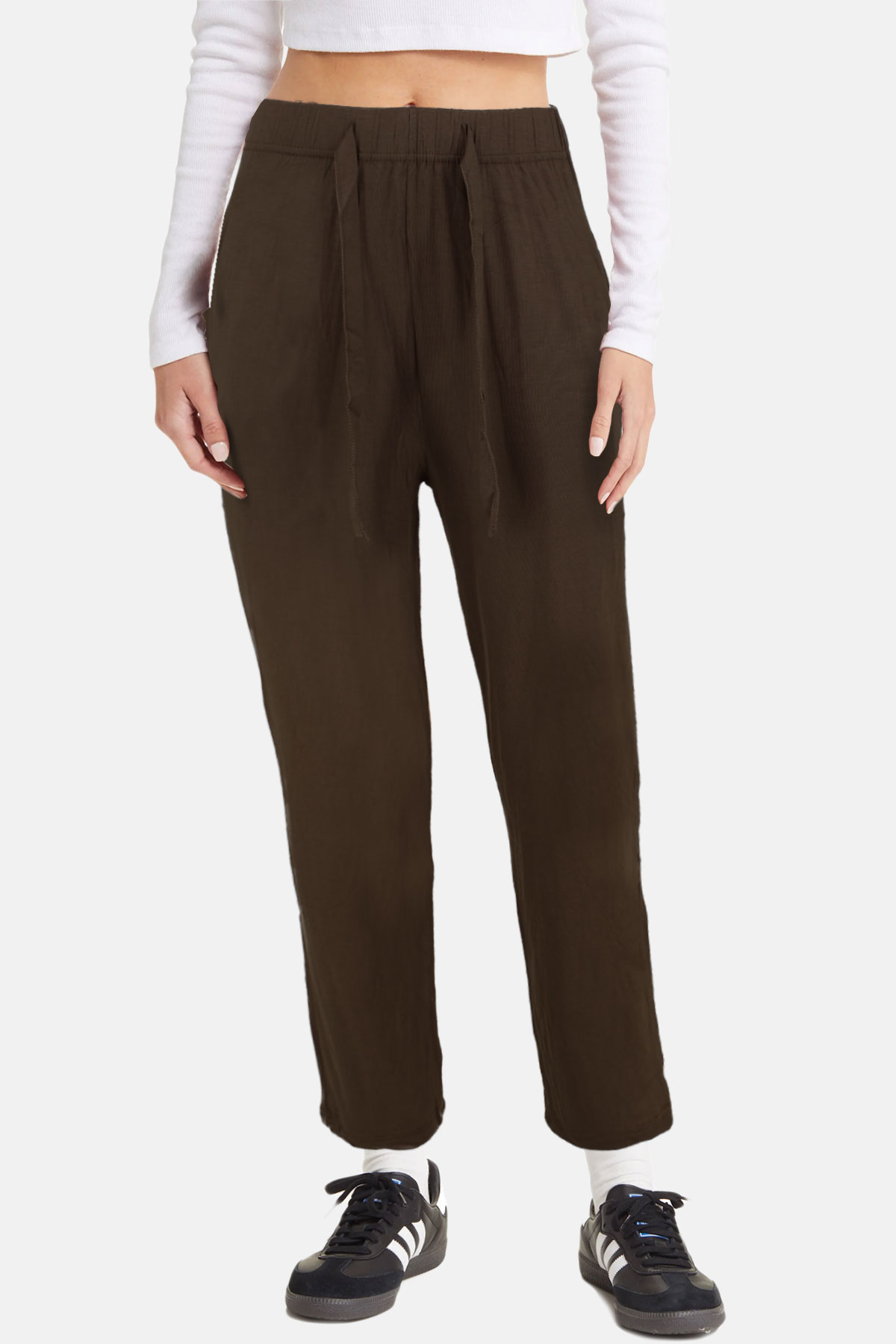 Megfit Kadın Tek Alt Şalvar Düz Paça Cep Detaylı - Koyu Kahve