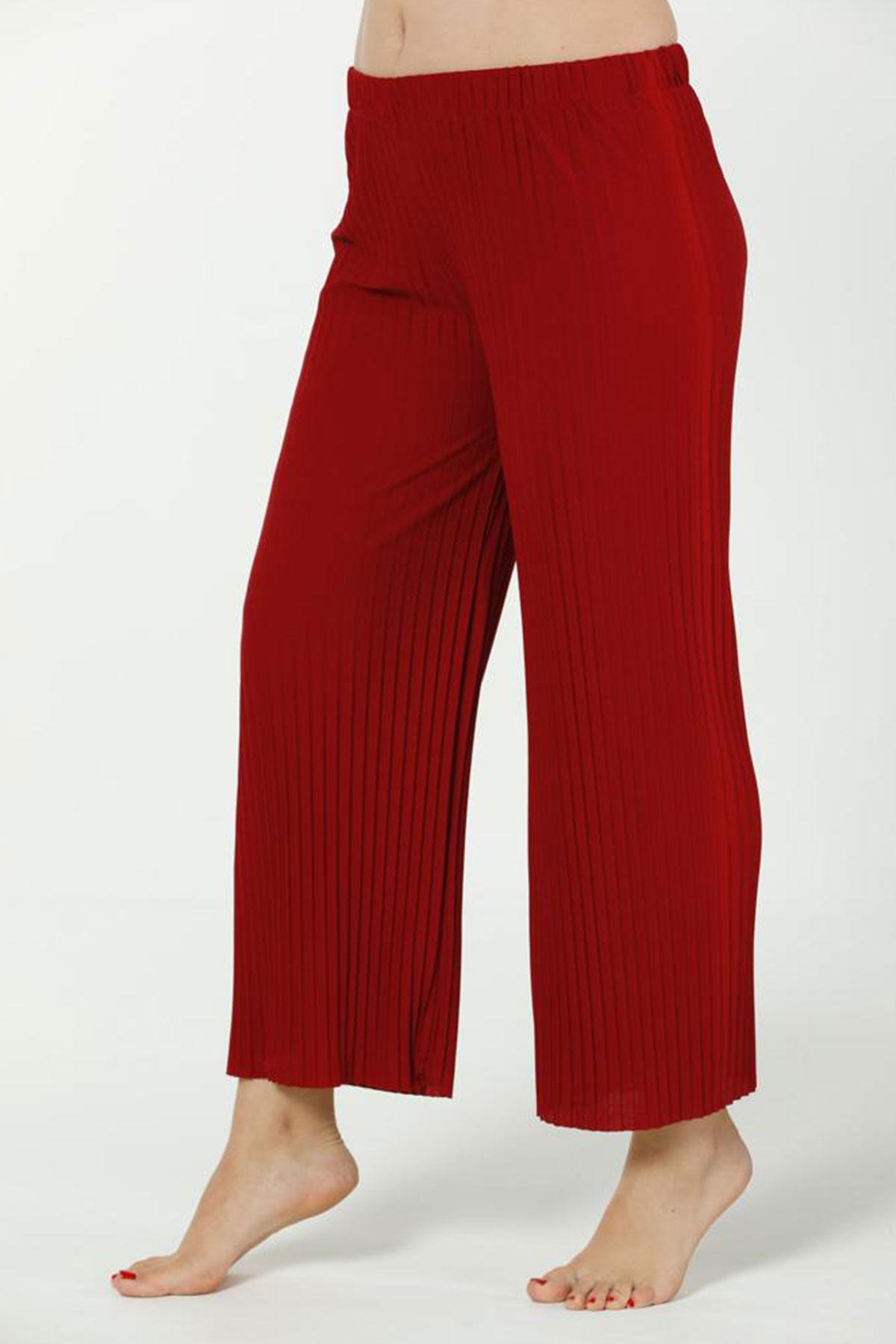 Megfıx Kadın Pantolon Düz Pliseli Krep - Bordo