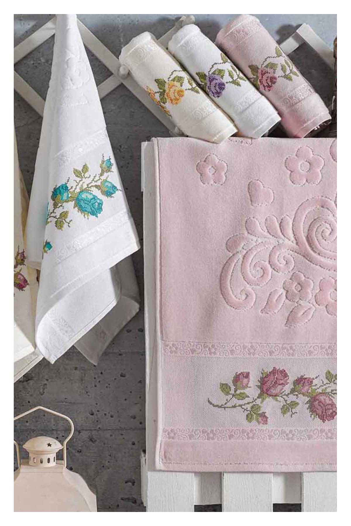 Nurpak El-Yüz Havlusu Etamin Kadife Nakışlı 50x90