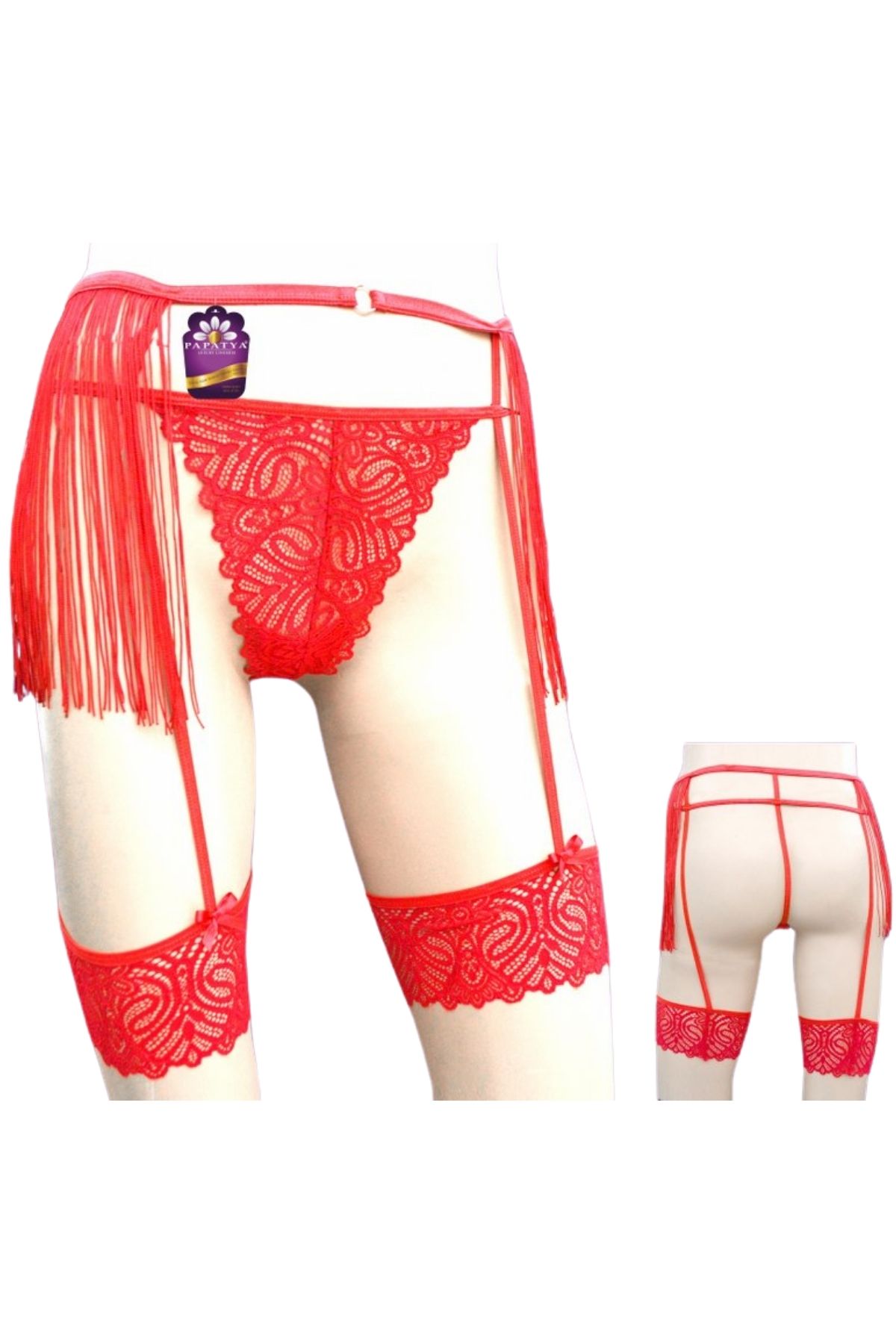Papatya Kadın Tanga Külot Jartiyer Püsküllü Alt Bant Arka İp