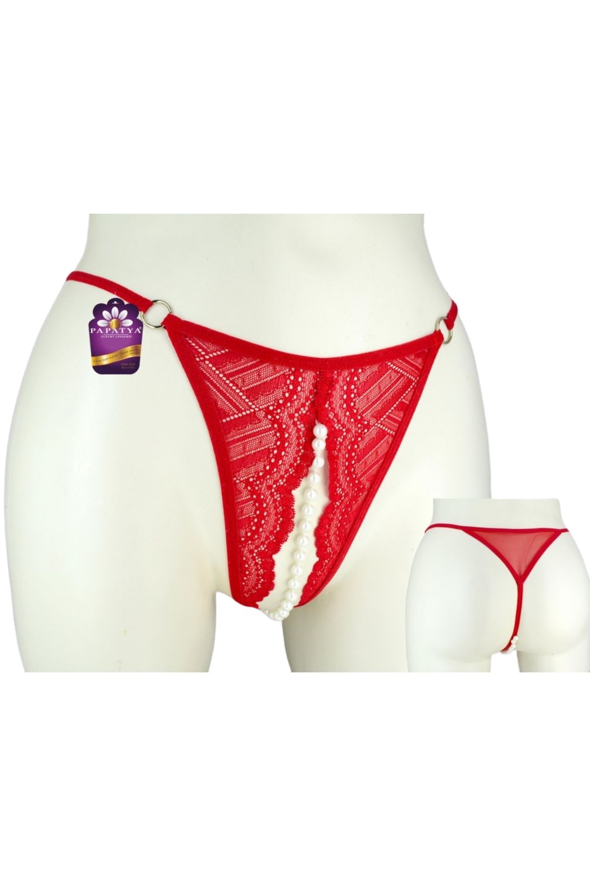 Papatya Kadın Tanga Külot Önü Açık İnci Aksesuarlı