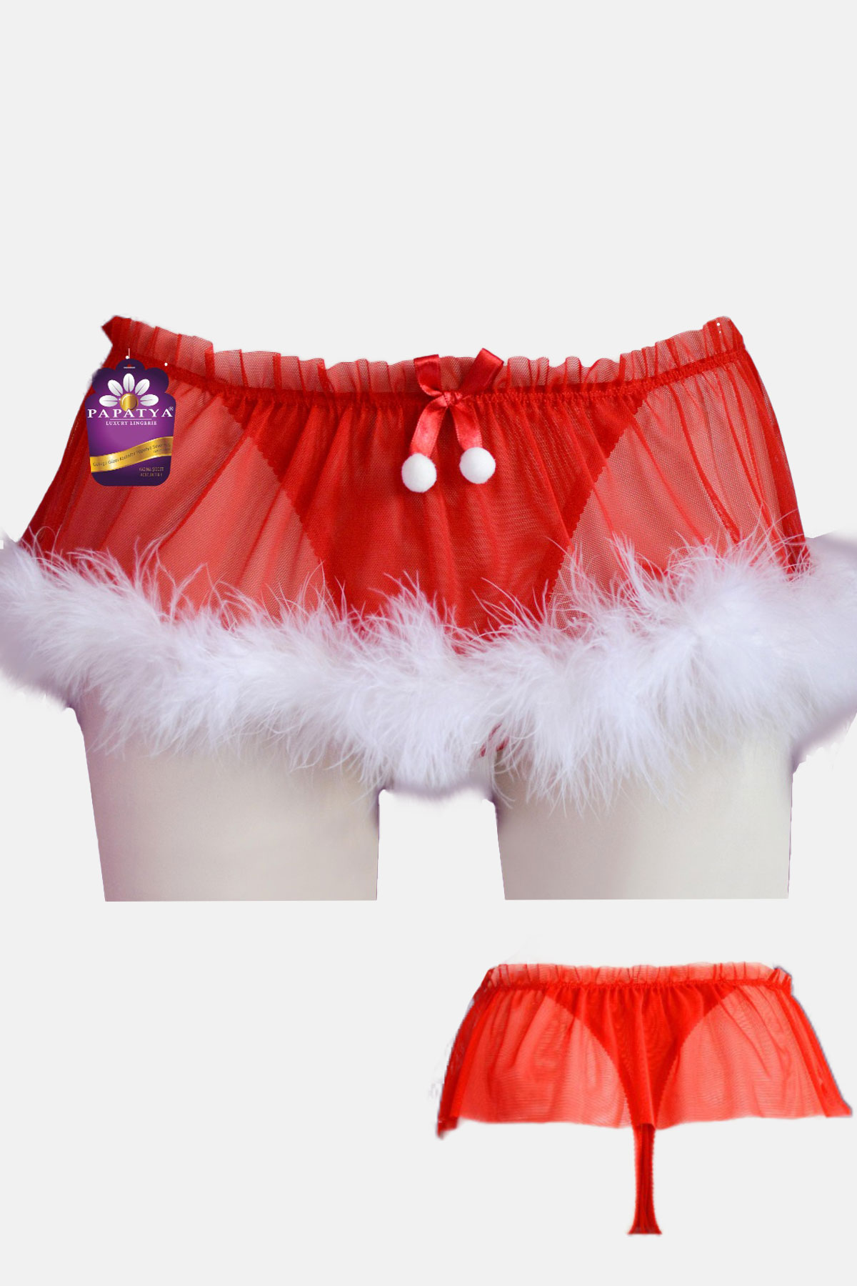Papatya Kadın Tanga Tül Etek Ucu Tüylü
