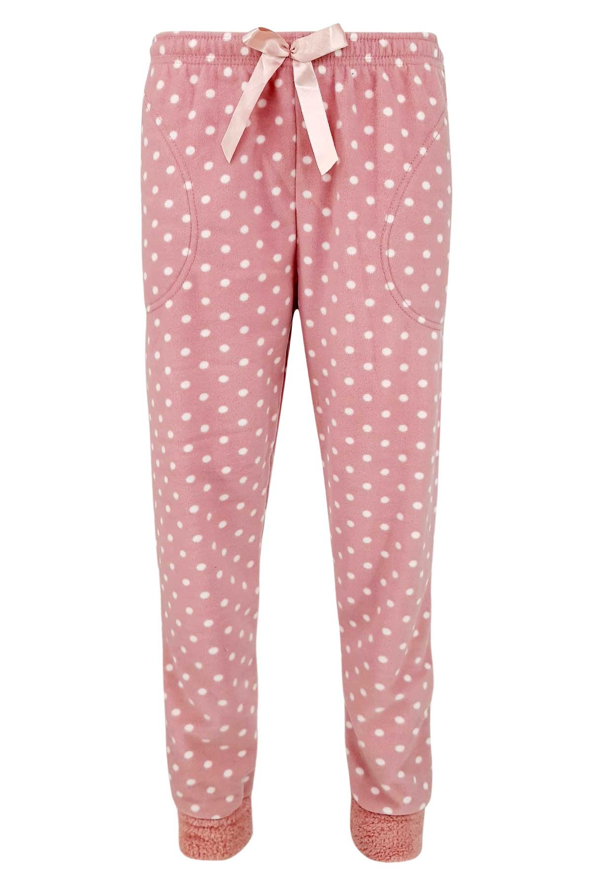 Pijamoni Kadın Tek Alt Pijama Cepli Desenli Polar - Pudra/1