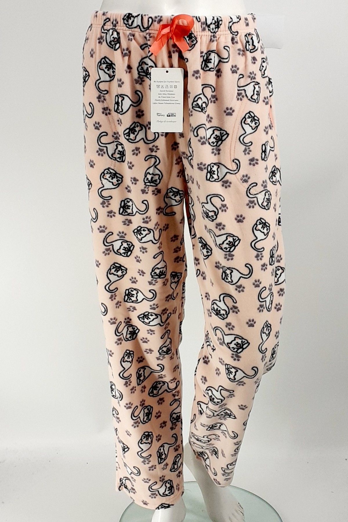 Pijamoni Kadın Tek Alt Pijama Cepli Polar - Somon/1