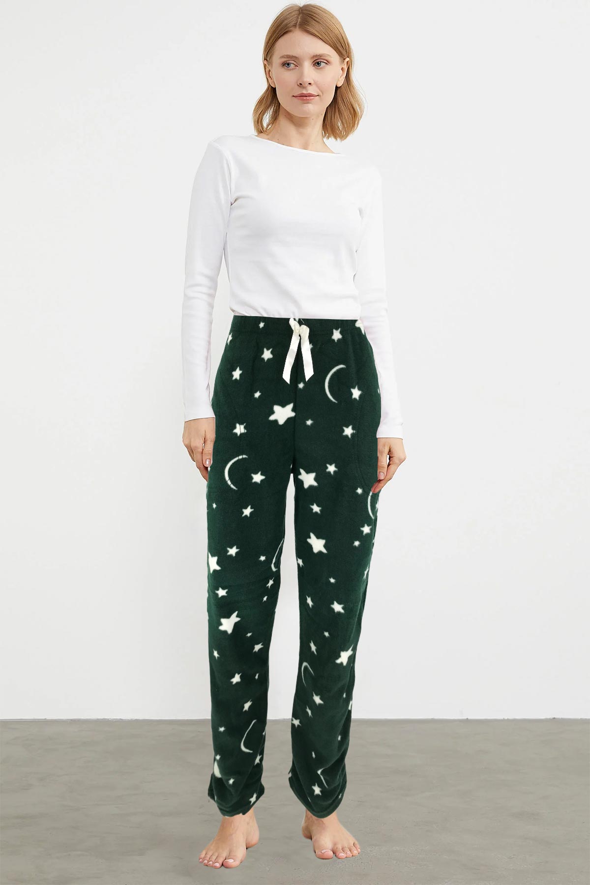 Pijamoni Kadın Tek Alt Pijama Cepli Polar - Zümrüt Yeşili