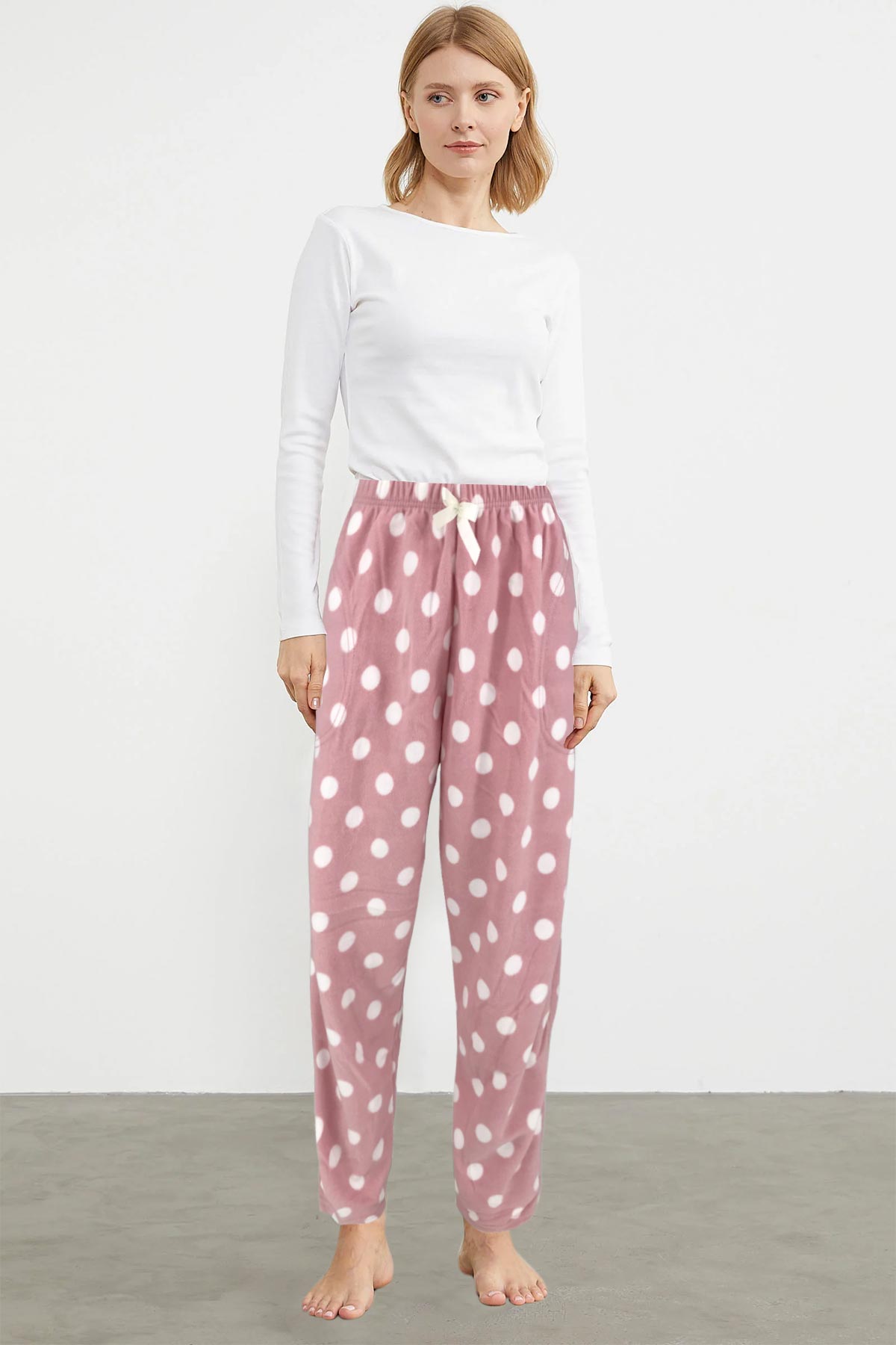 Pijamoni Kadın Tek Alt Pijama Polar Büyük Beden - Pudra Pembe/4