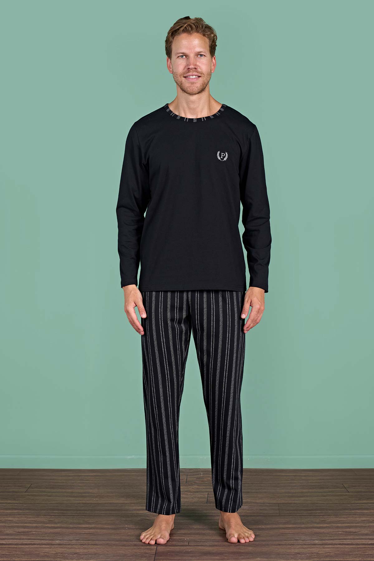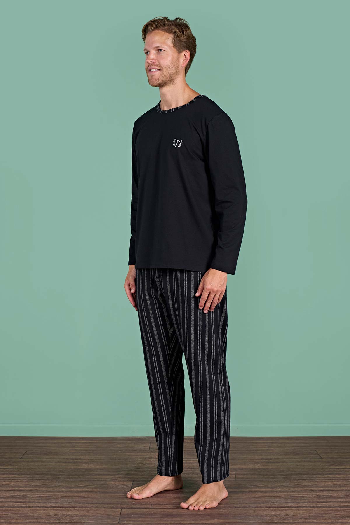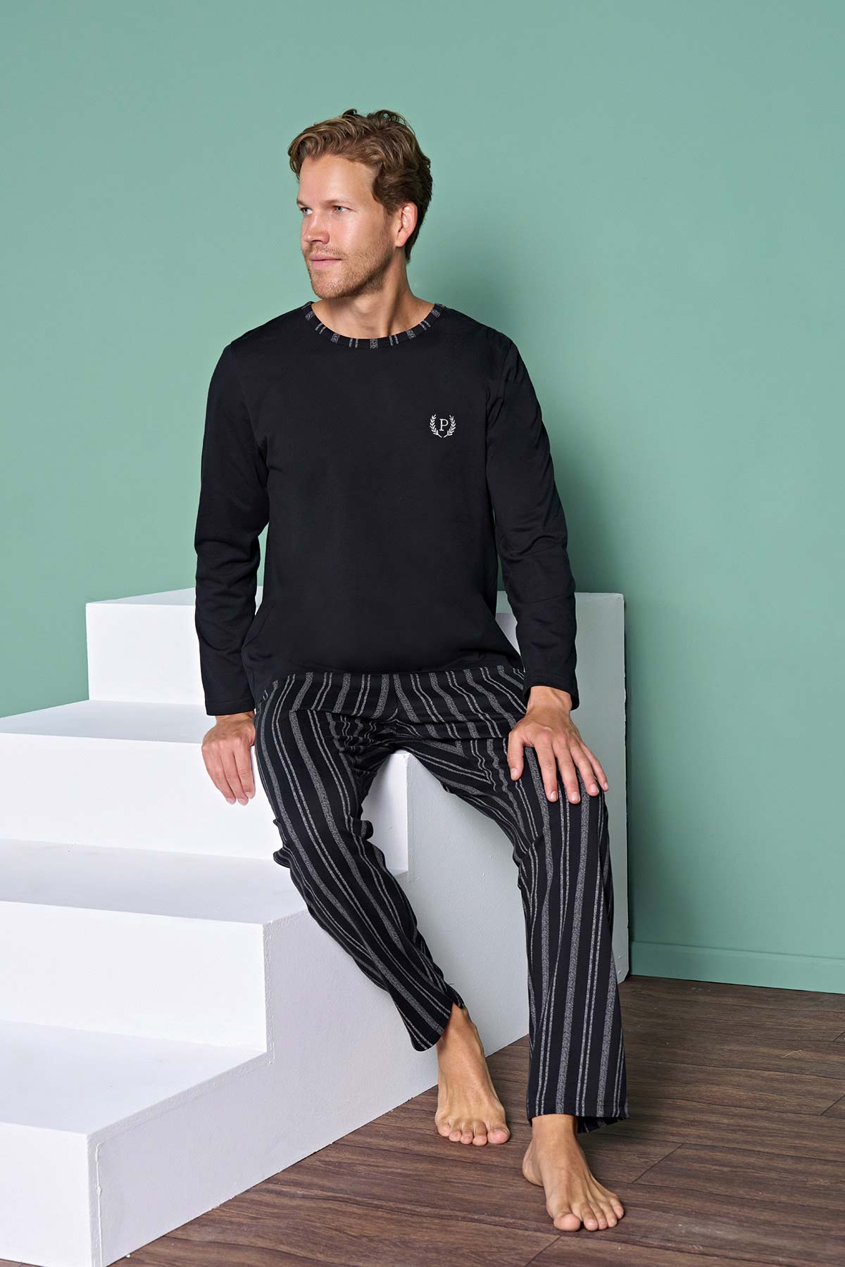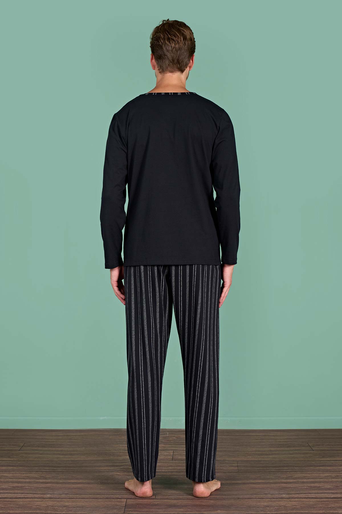 Pınarca Erkek Pijama Takımı Uzun Kollu Altı Çizgili Pamuklu - Siyah