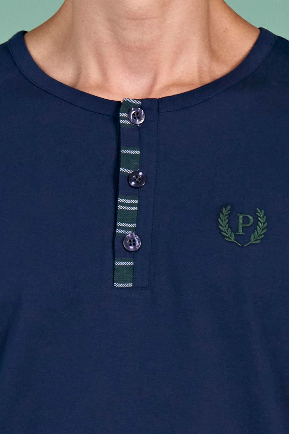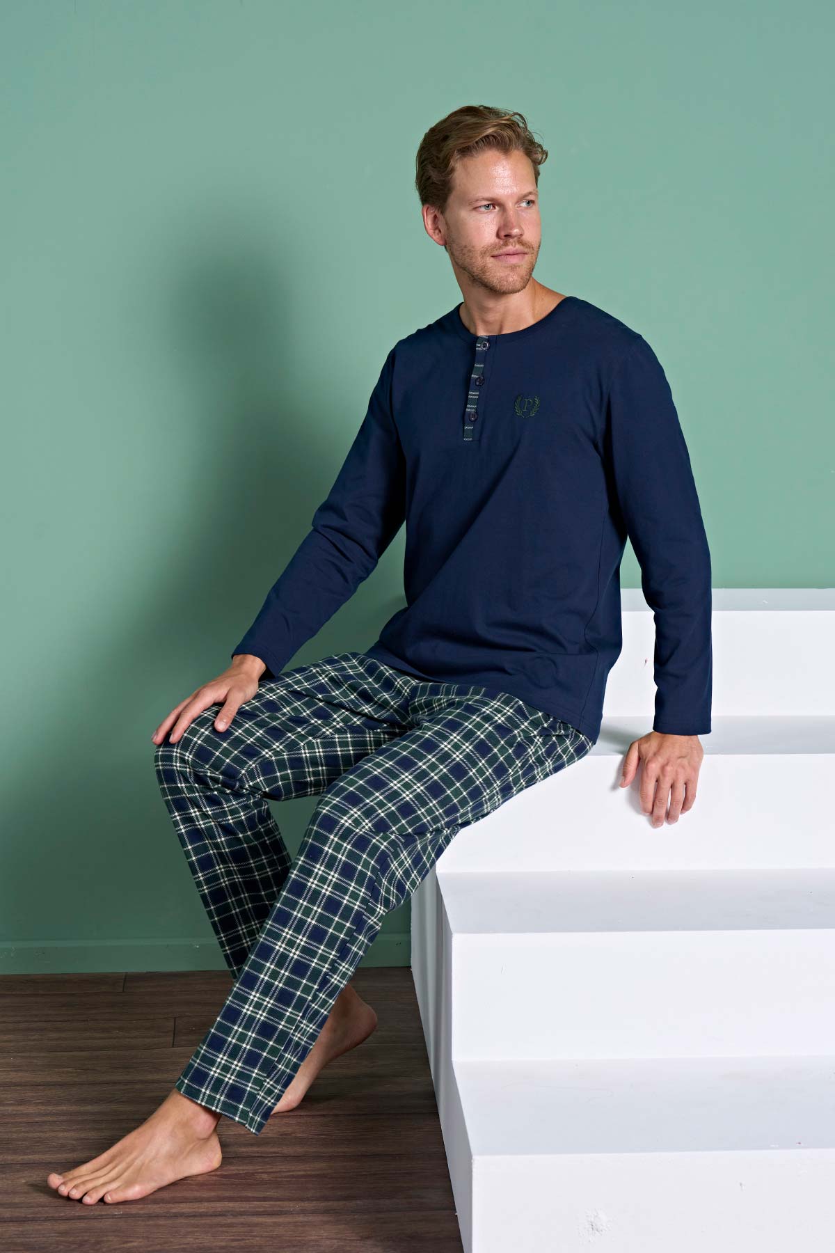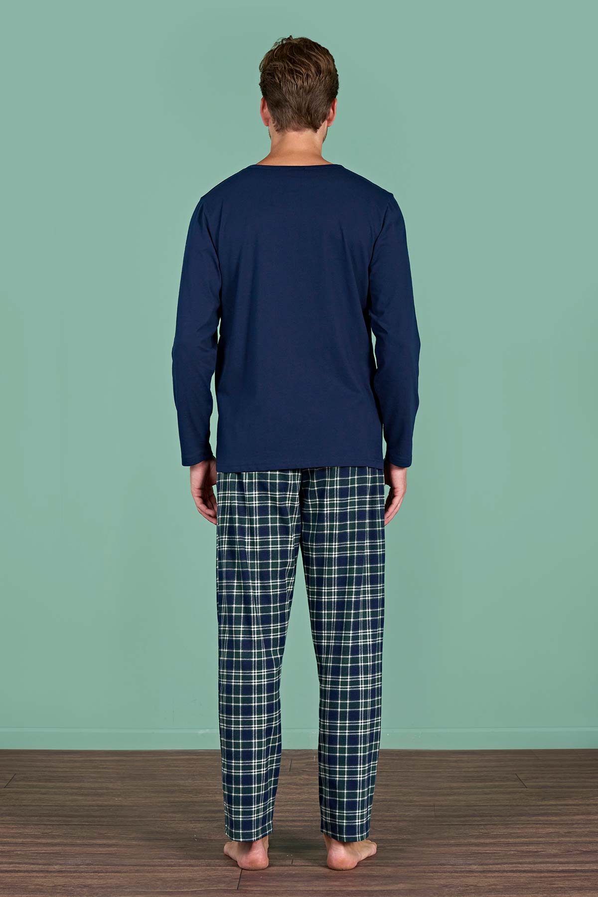 Pınarca Erkek Pijama Takımı Uzun Kollu Düğmeli Ekoseli Pamuklu Eşli - Lacivert