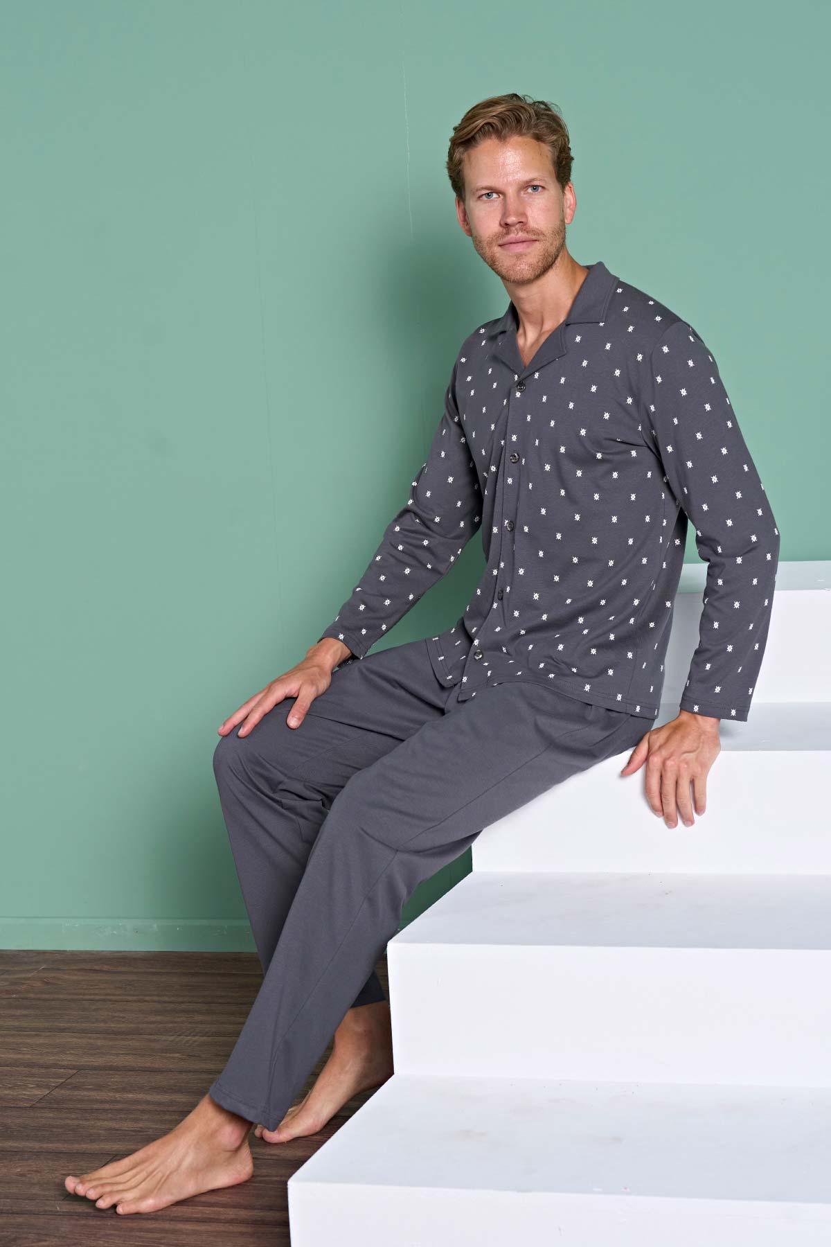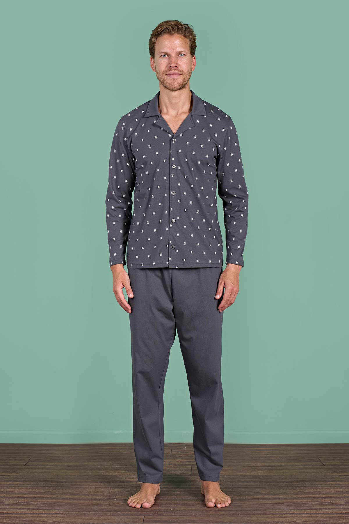 Pınarca Erkek Pijama Takımı Uzun Kollu Gömlek Yaka Desenli Pamuklu - Füme