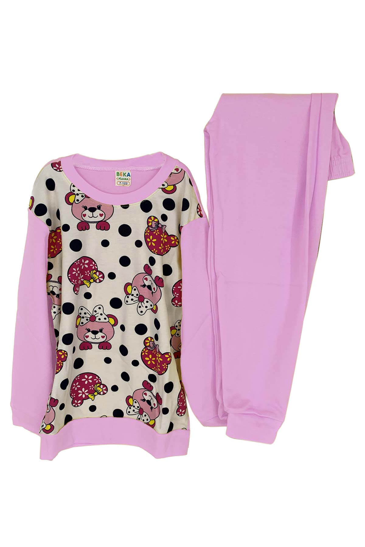 Pınarca Kız Çocuk Ayı Desenli Klasik Takım - Pembe