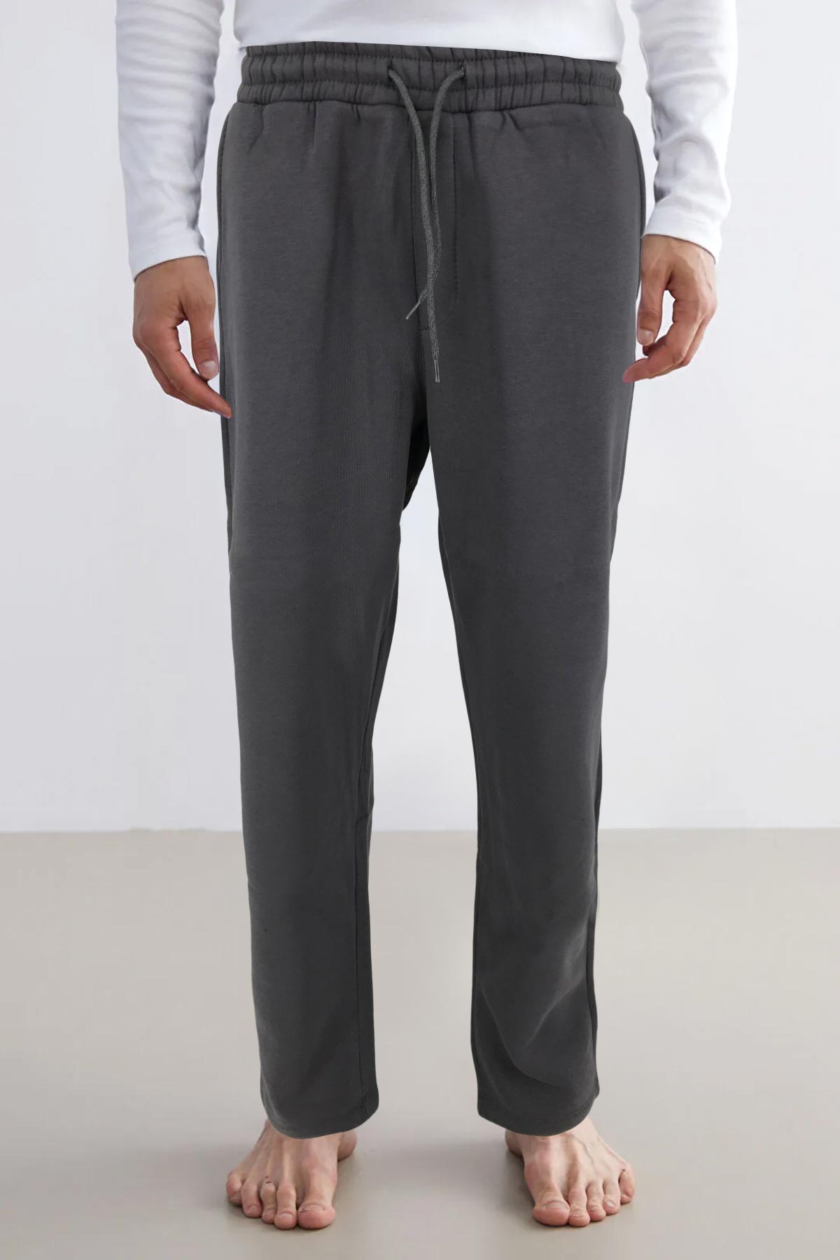 Pogi Erkek Büyük Beden Tek Alt Eşofman 3 İplik Düz Paça - Füme