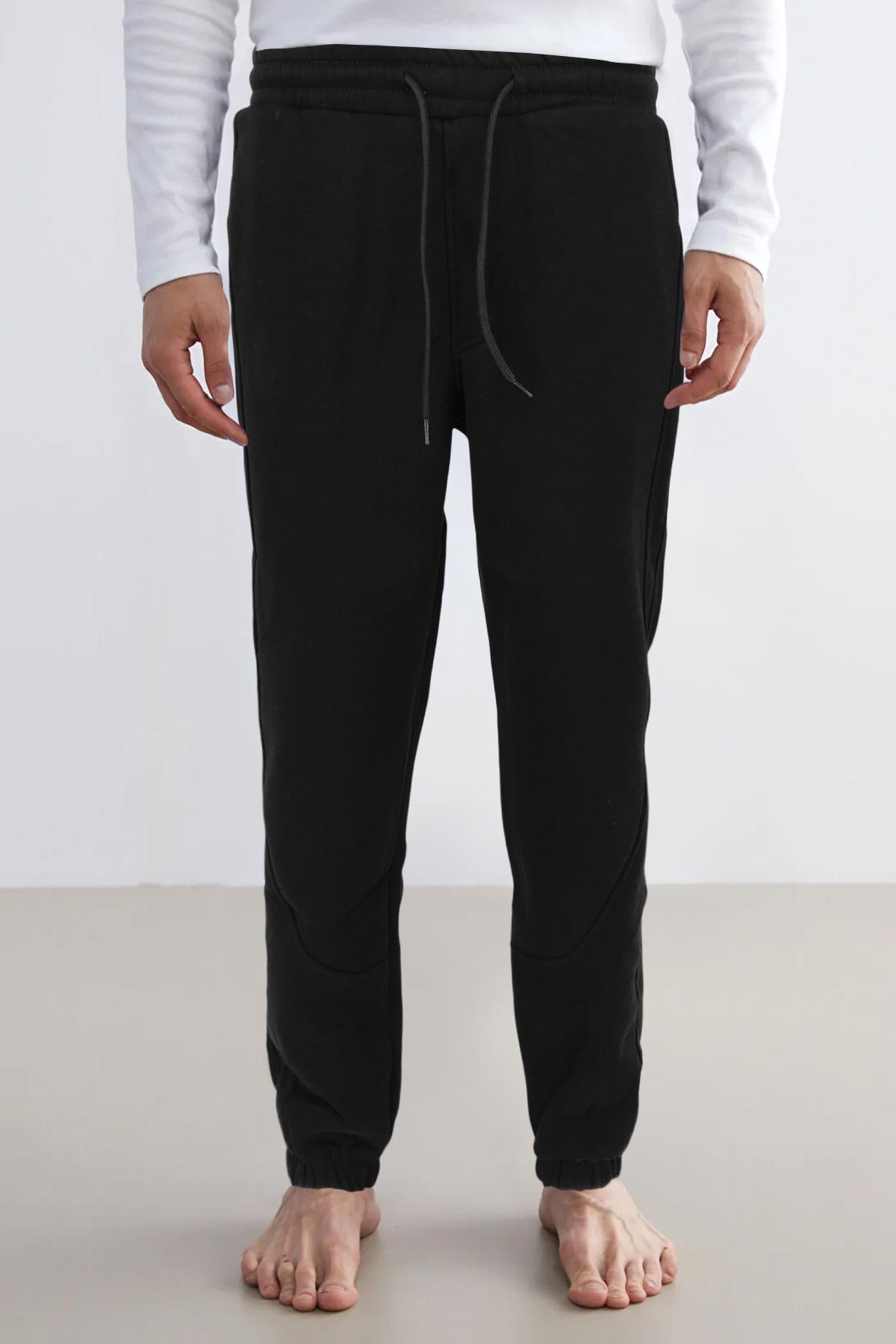 Pogi Erkek Tek Alt Eşofman 3 İplik Paça Lastikli - Siyah